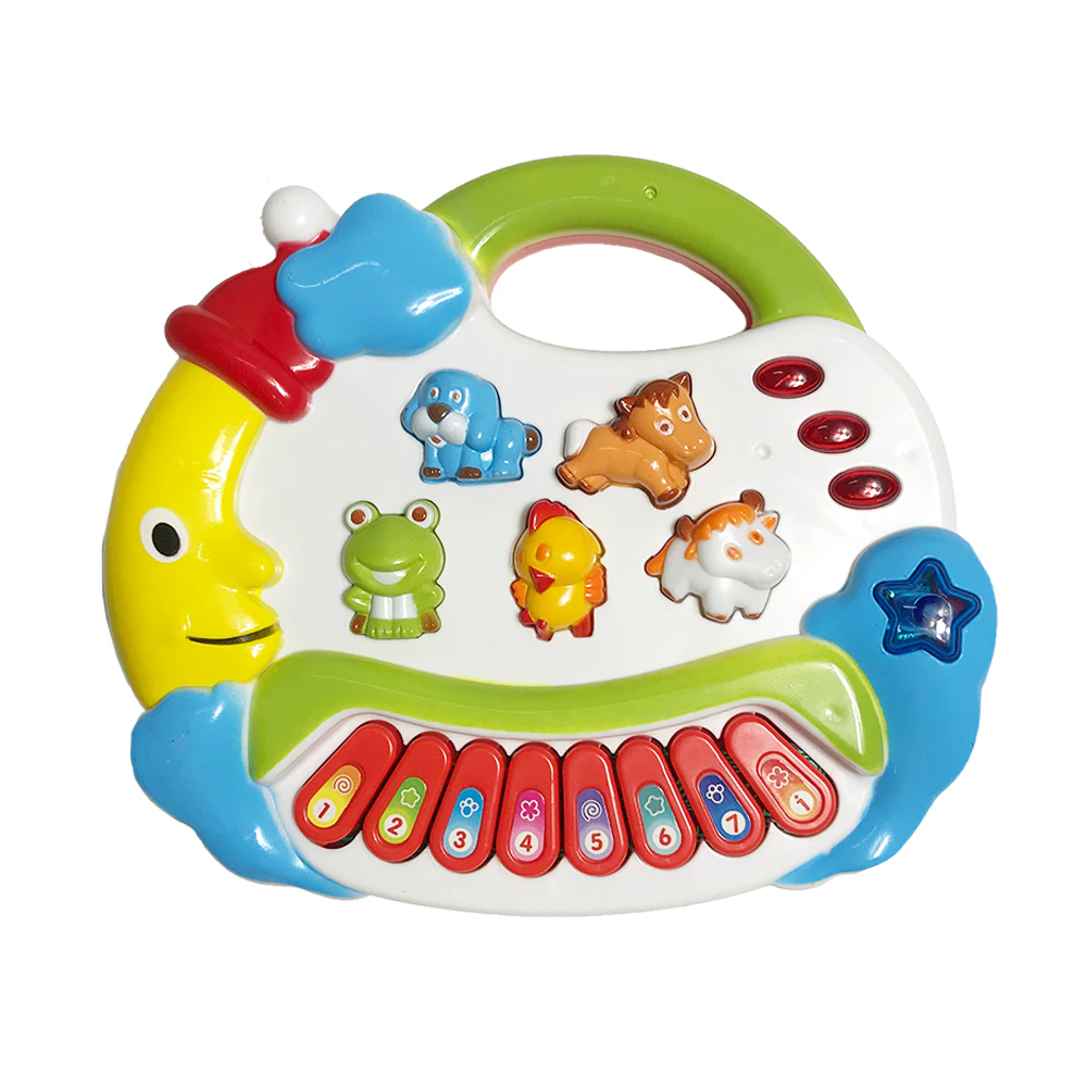 Piano musical de la marca Oguss, este hermoso piano con su mecanismo de luz y sonido del piano, hará que las habilidades de pensamiento complejo y las funciones motoras se desarrolle como nunca antes. El producto tiene teclas clásicas de 8 notas. Además, hay 5 sonidos de animales (caballo, vaca, pato, perro y rana) en el producto.Reseñas de Familias Felices 💖