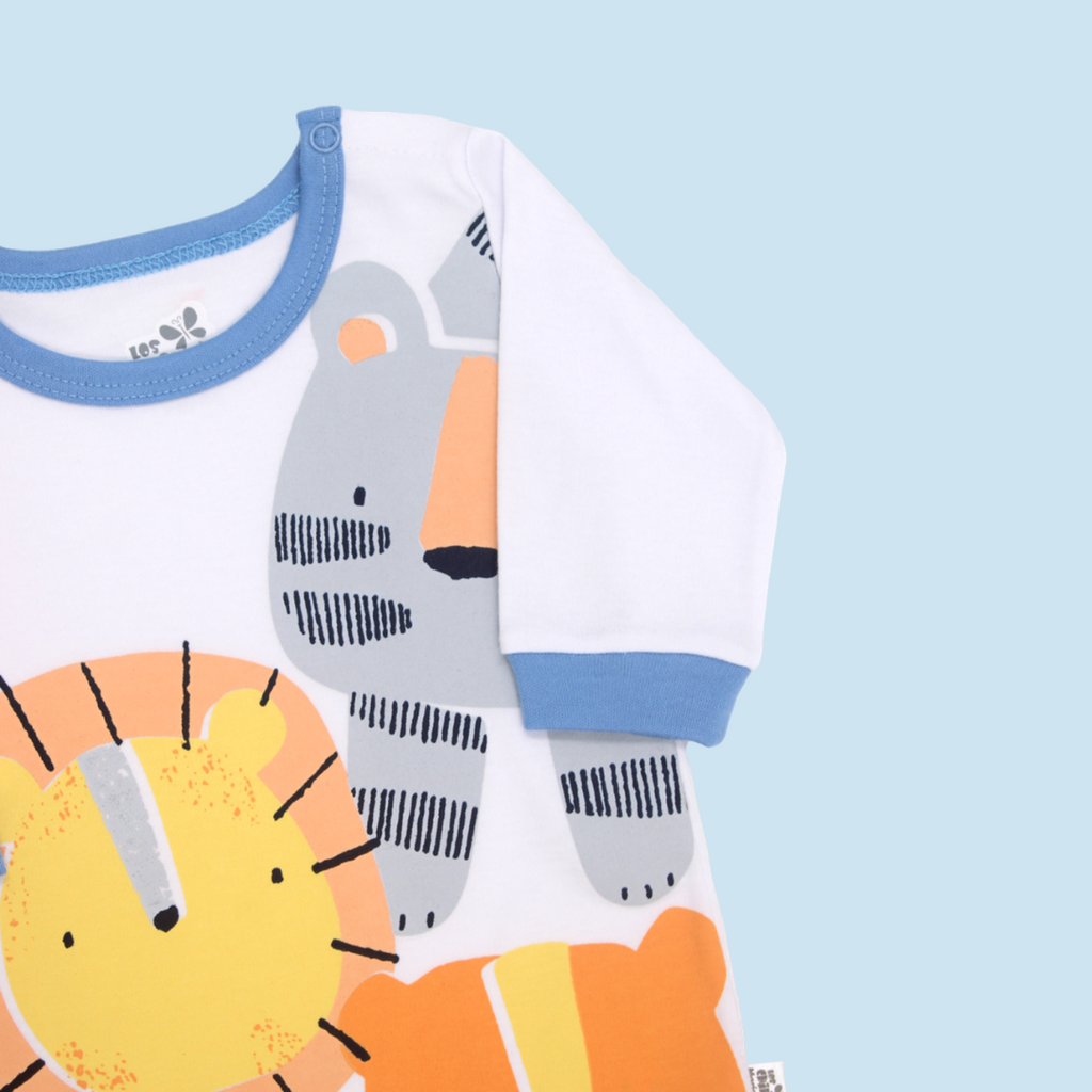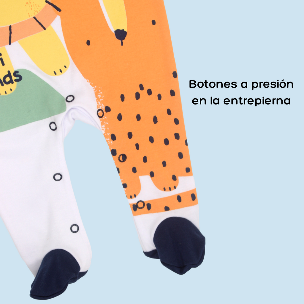 Pijama de bebé, ideal para los días fríos, los mantiene abrigaditos. Puedes extender la manga de la pijama y usarla como manopla para abrigar a tu bebé. Con botones en la entrepierna para facilitar los cambio
