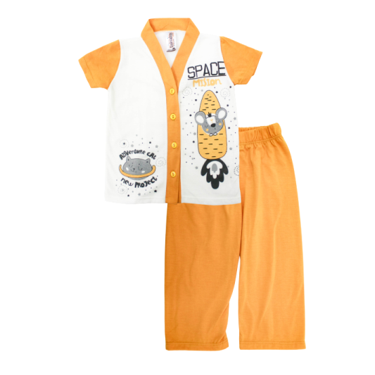 Pijama conjunto con estampado, elaborado en algodón. Camiseta manga corta y cuello redondo, sudadera unicolor con cintura ajustable.