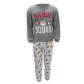 Pijama conjunto con estampado navideño, elaborado en tela suave. Camiseta manga larga y cuello redondo, sudadera con estampado navideño con cintura ajustable.