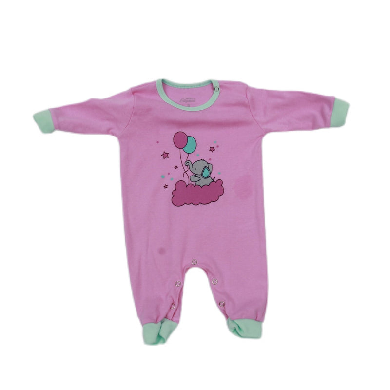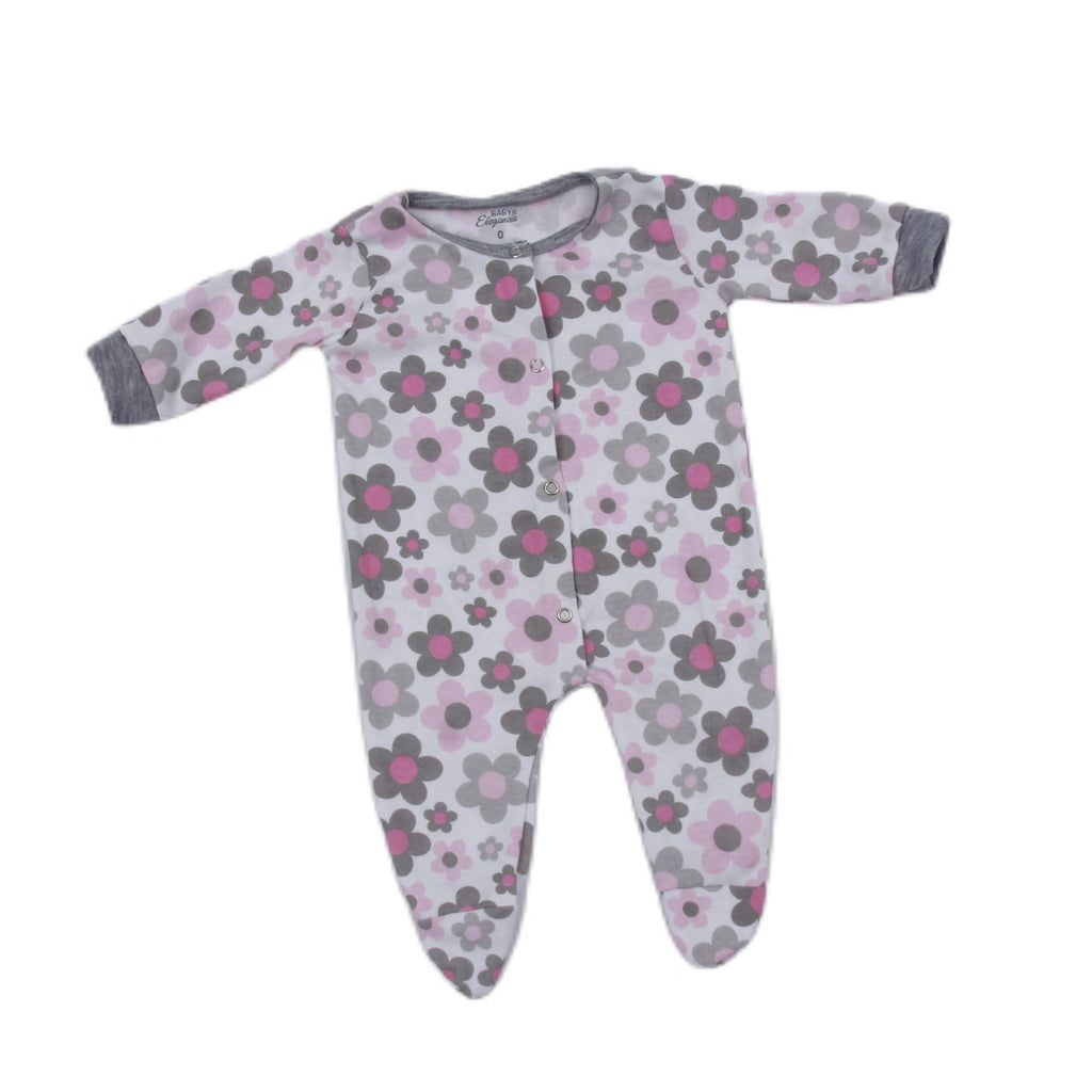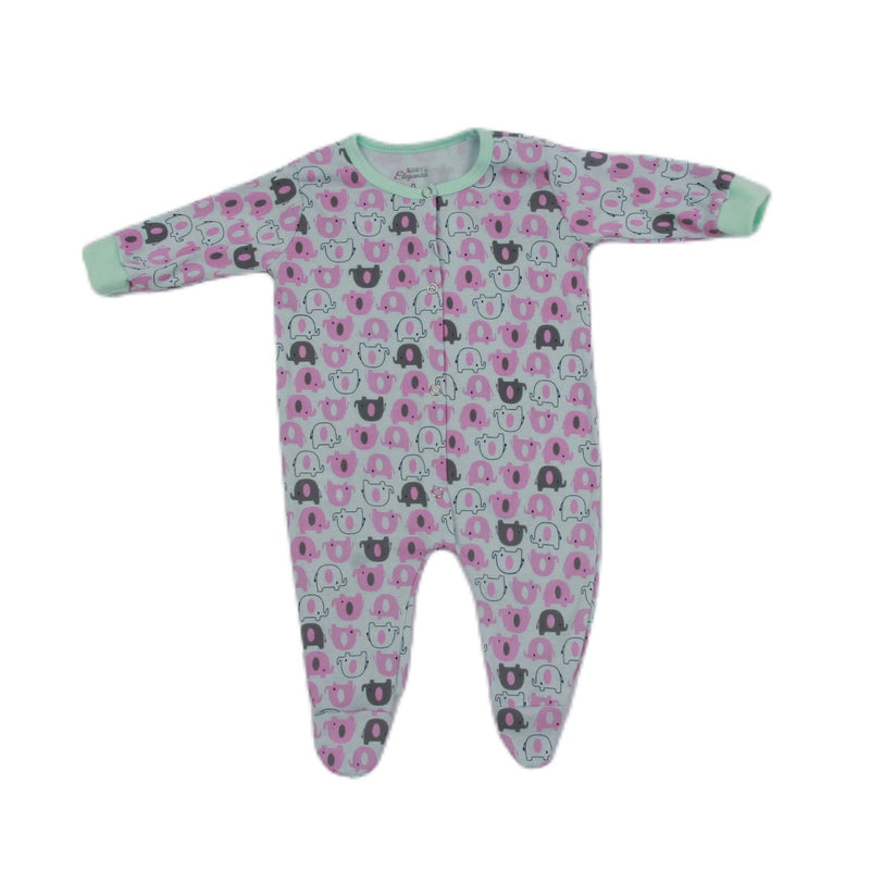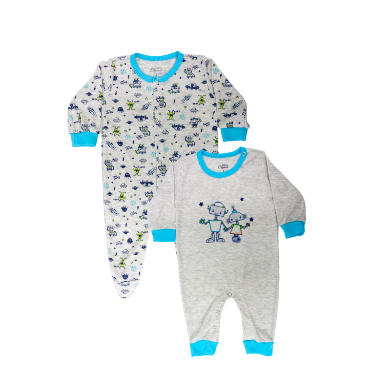 Pijama x 2, contiene una pijama unicolor estampada con sesgo de colores y otra pijama con estampados de piececito cerrado.