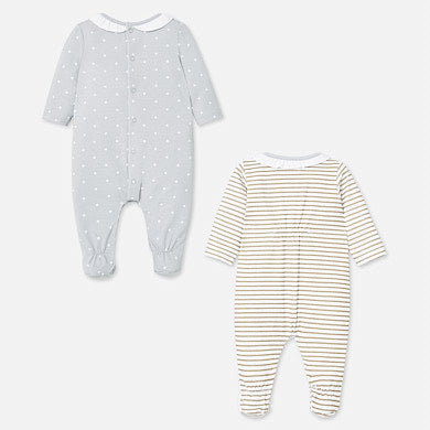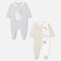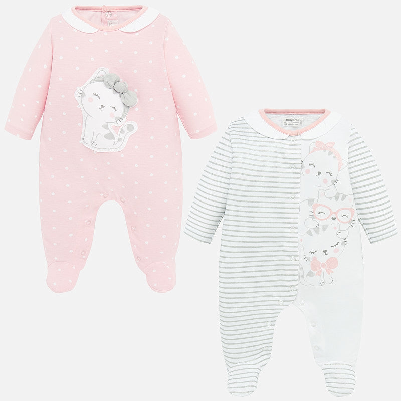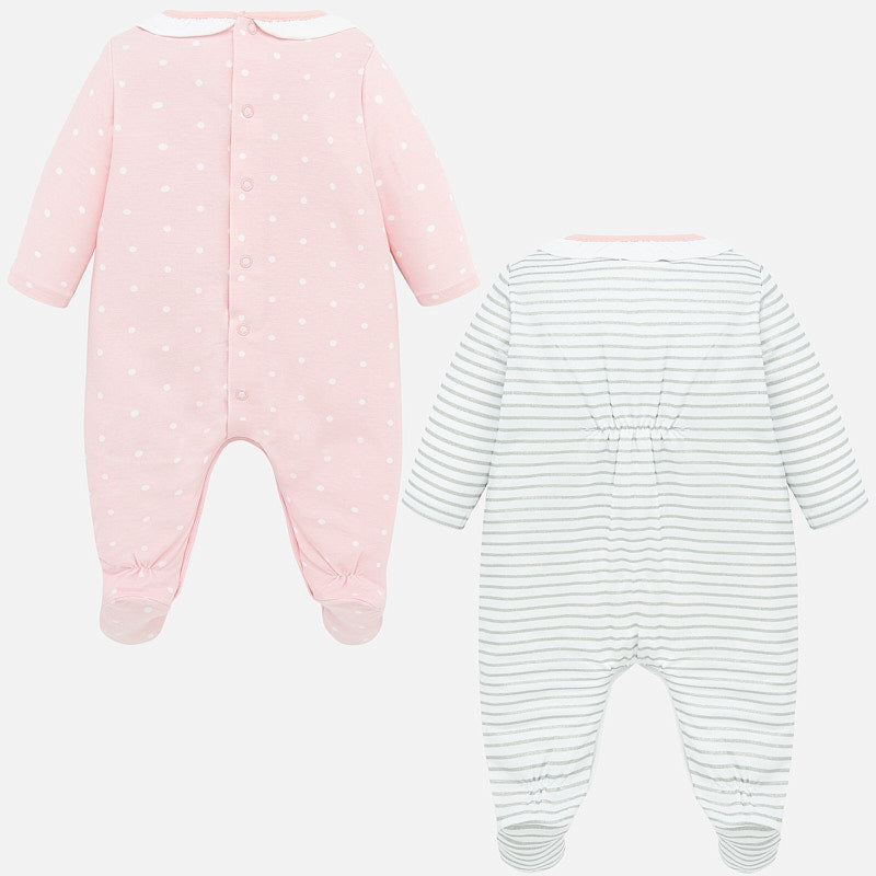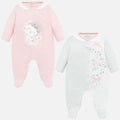 Set de dos pijamas para bebé niña recién nacida. Suave tejido de algodón elástico.