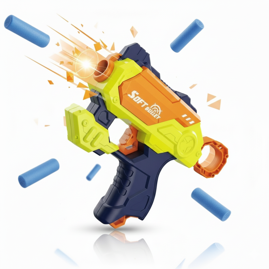 Pistola de dardos de espuma blanda para mayores de 3 años.