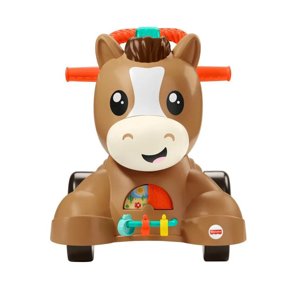 Despeja el camino y pásales las riendas, los más pequeños serán imparables. Tu bebé podrá trotar y disfrutar de sus propias aventuras salvajes con el Poni camina, salta y monta de Fisher-Price. Este andador musical crece con tu bebé, desde caminar hasta saltar, sin parar por toda la casa, con un asiento realmente cómodo y suave, y luces y sonidos para que no deje de moverse. Cuando tu bebé pulse los botones y gire el cilindro de cuentas, escuchará canciones divertidas y frases sobre los colores, el alfabeto, los números y contar de 1 a 10. Las habilidades de equilibrio y coordinación de tu pequeño mejorarán mientras se mueven caminando, saltando y montando con su poni.