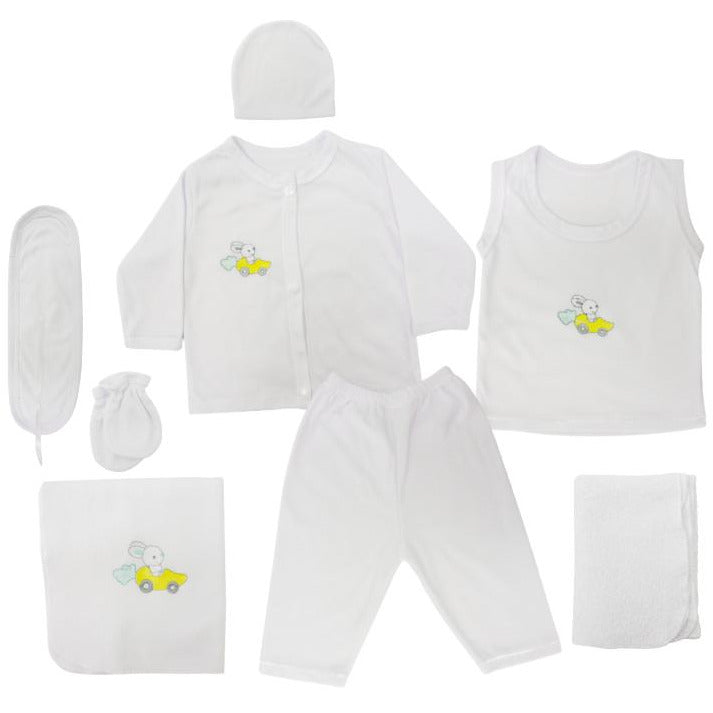 Primer día caja unicolor 8 piezas con bordado. Elaborado en tela suave, ideal para los primeros días de tu bebé.