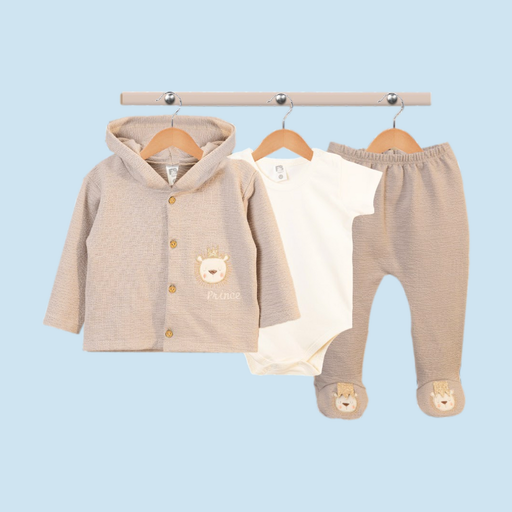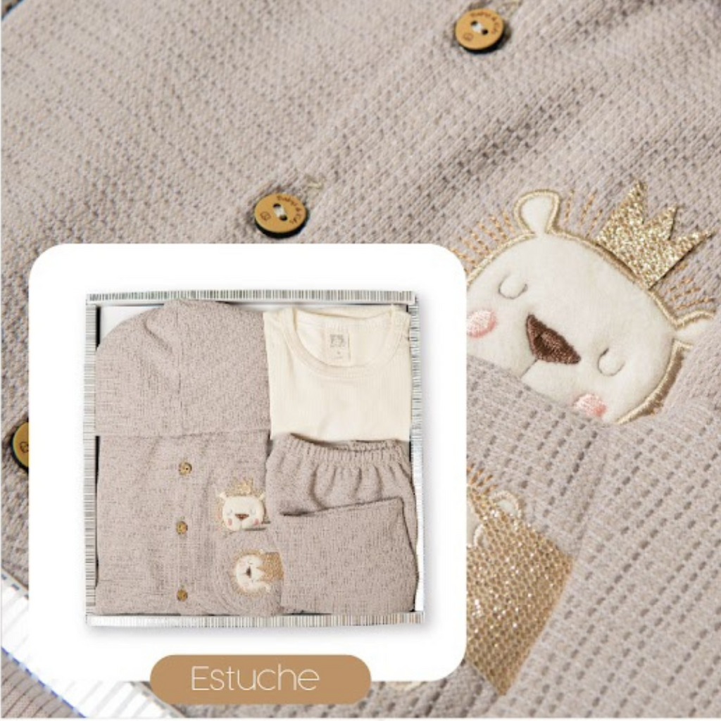 Este conjunto de 3 piezas para bebés es perfecto para mantener a tu pequeño abrigado y cómodo. Con un hermoso estampado y colores que combinan perfectamente, cuenta con botones en la parte delantera para una fácil colocación. Además, el pantalón con pies cerrados lo mantendrá caliente durante todo el día. ¡Un imprescindible para tu bebé!