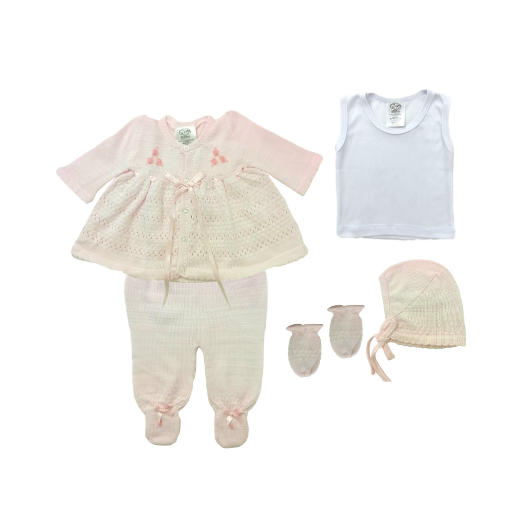 Primer día 5 piezas, ideal para los primeros días de tu bebé, puede disfrutar de varias pintas para tu pequeña combinando las piezas entre sí.