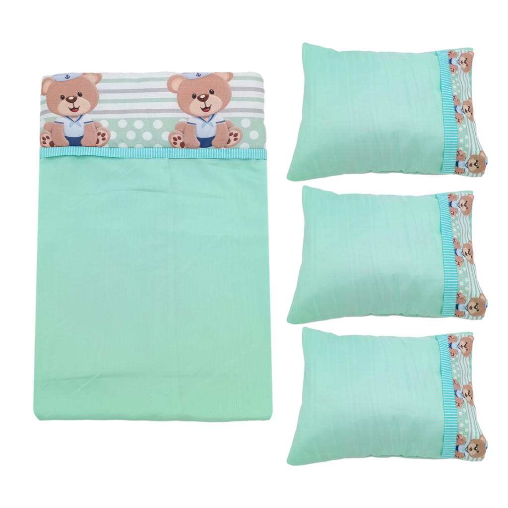 Juego de sábana para cuna con hermosos estampados. Variedad de motivos y colores. Contiene fundas estampadas y con bordados.