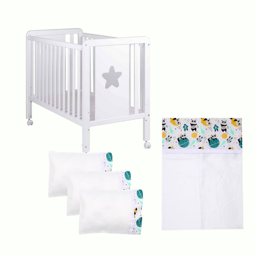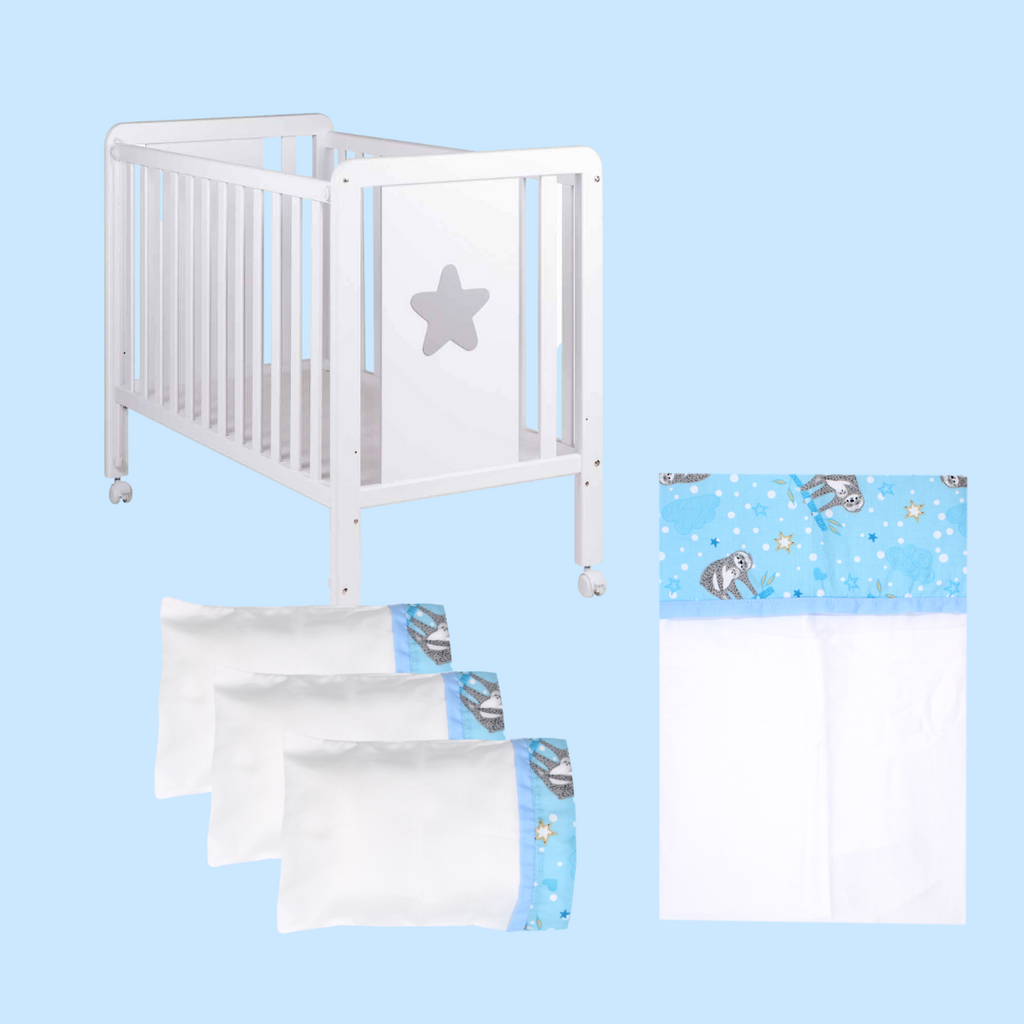 Juego de sábana para cuna con hermosos estampados. Variedad de motivos y colores. Contiene fundas estampadas y con bordados.
