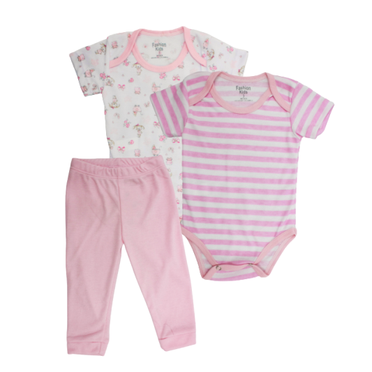 Set bodys y sudadera, con bordados en la parte del frente.. Contiene un body estampado y otro a rayas, Sudadera unicolor con bordado y elástico para un mejor ajuste. Ideal para mantener a tu bebé siempre fresco.