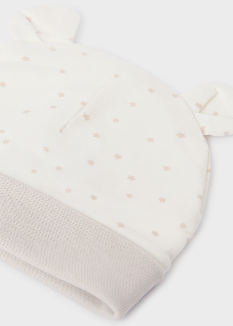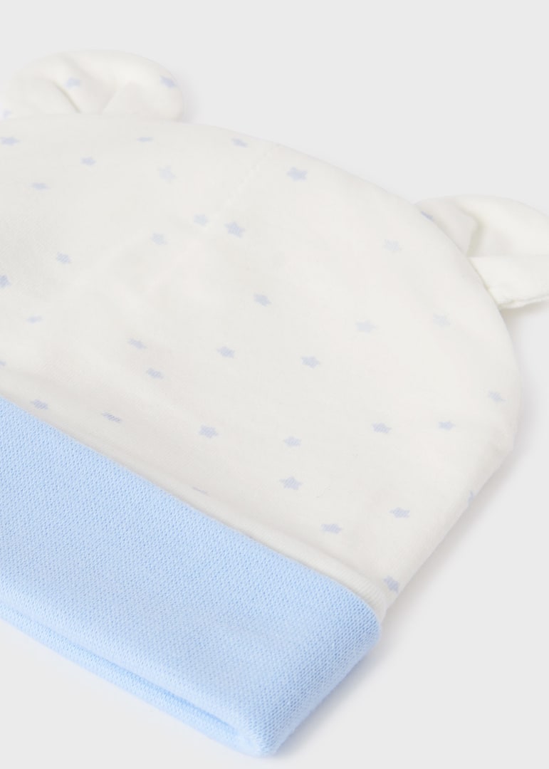 Suave gorro para bebé. Elementos de adorno: aplique de orejitas.