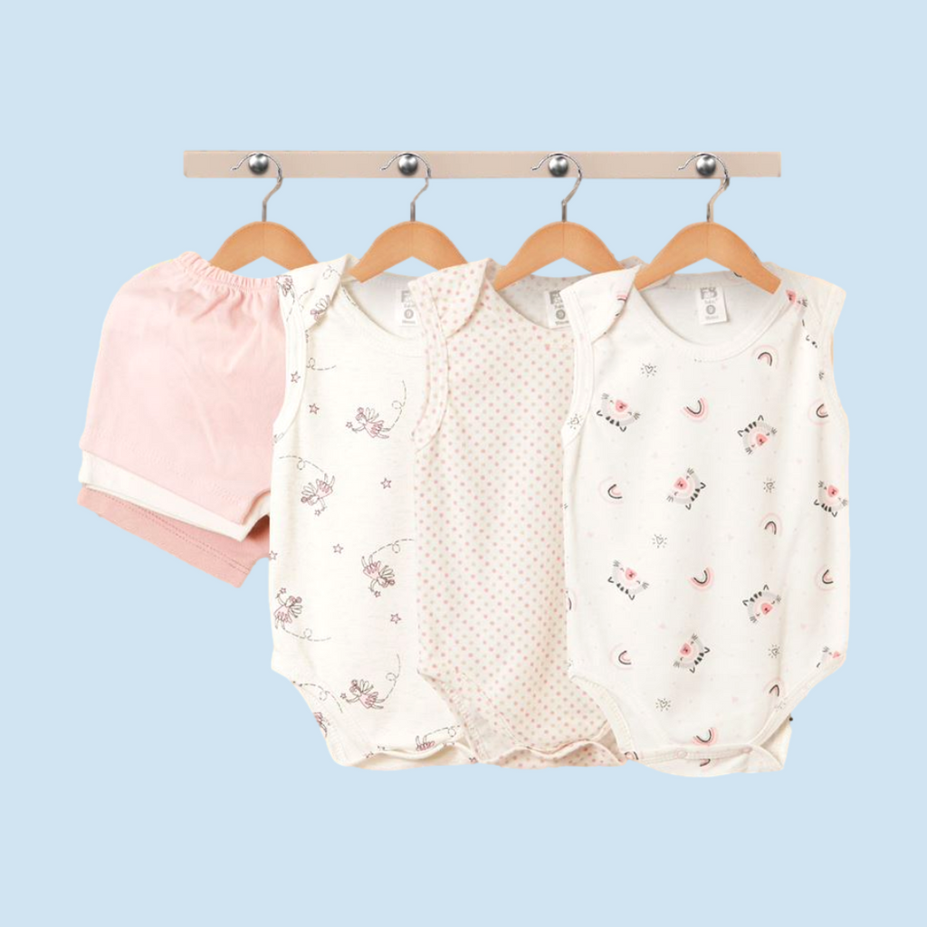 ¡Prepara a tu bebé con este hermoso set de For Baby! Esta linda prenda acompañará a tu pequeña en todas sus aventuras, ¡con su tela suave, color pastel y estampado! El fresco y elegante diseño harán que se vea hermosa.
