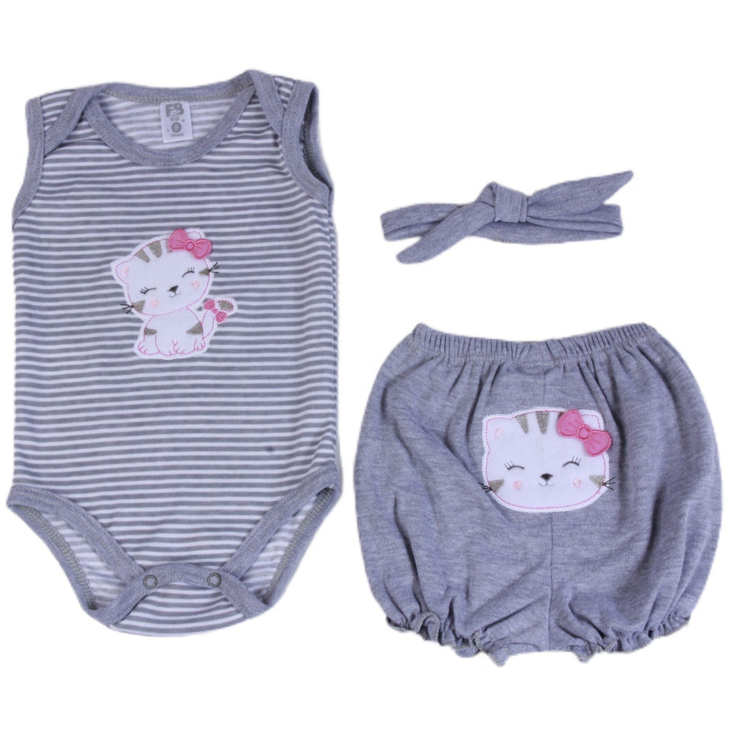Set para bebé de 3 piezas combinado con bordados y sesgo de colores. Elaborado en tela suave y fresca.