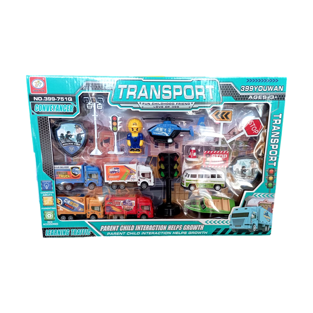 El Set de Medios de Transporte 399-751Q STB es un juego completo y educativo diseñado para niños que aman explorar el mundo de los vehículos y el transporte. Este set incluye una variedad de camiones, autobuses, helicópteros y señales de tránsito que estimulan el aprendizaje, la creatividad y la imaginación de los pequeños.