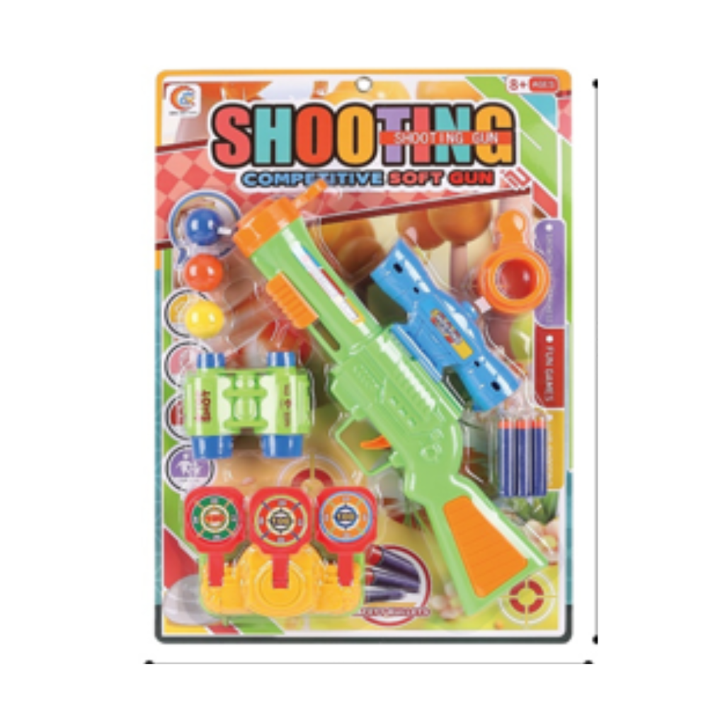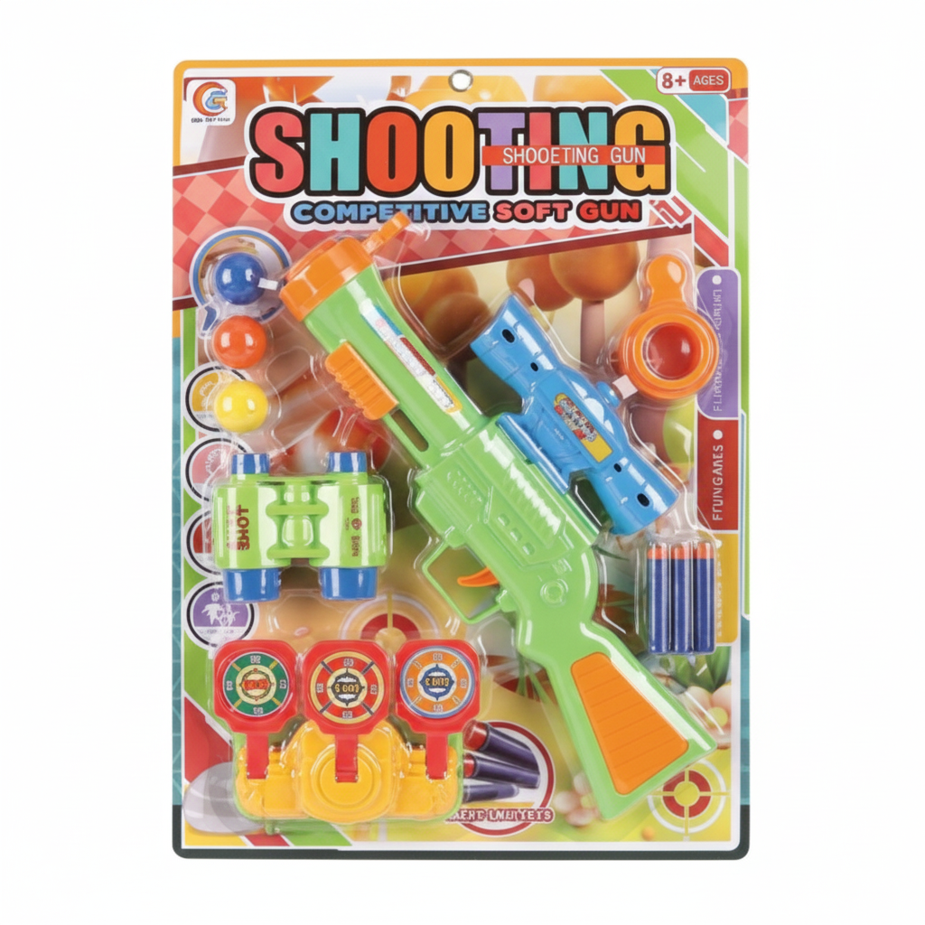 El set "Shooting Competitive Soft Gun" es un completo kit de tiro al blanco diseñado para juegos de competencia y diversión segura para niños a partir de años.