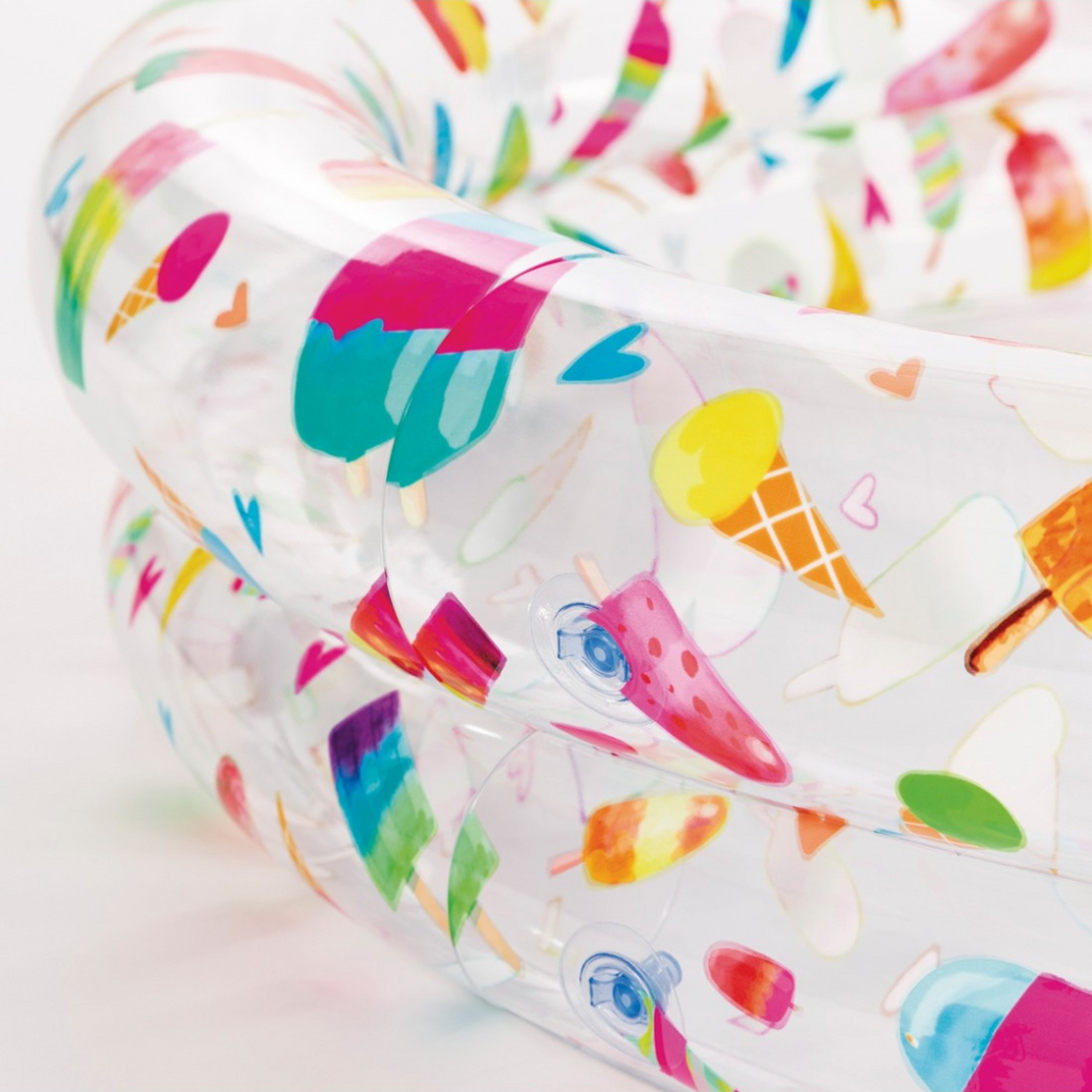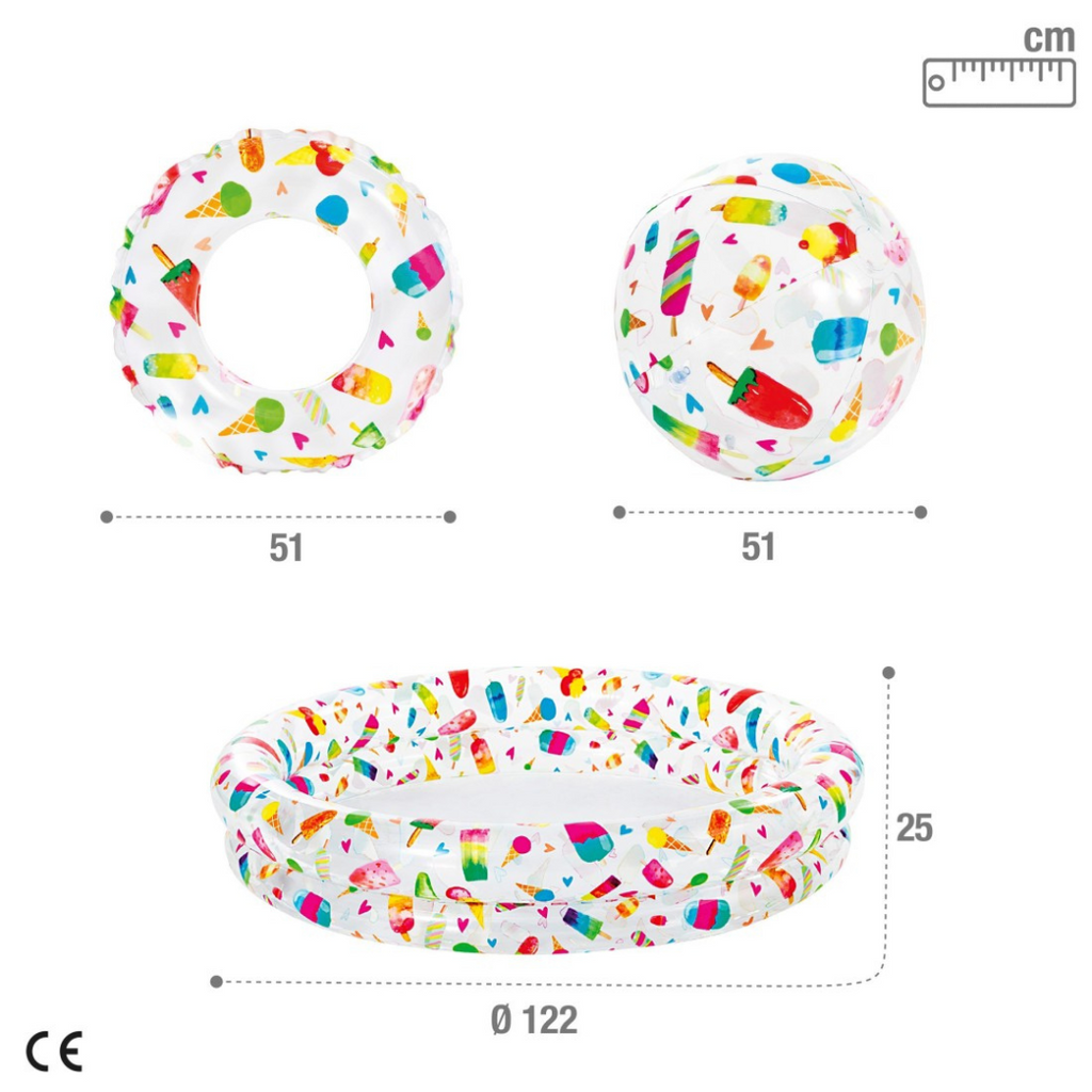 ¡El verano nunca ha sido tan divertido! El set de piscina inflable 59460 Baby Kays es perfecto para que los niños disfruten de horas de juego acuático de manera segura y cómoda. Con un diseño colorido y estampado de paletas heladas, este set incluye una piscina, un flotador y una pelota inflable, brindando una experiencia completa de entretenimiento al aire libre.