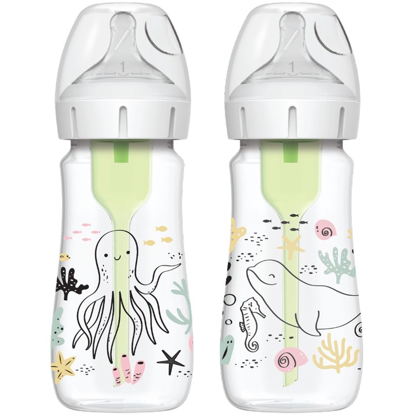 - PRESENTACIÓN BOCA ANCHA 9 ONZAS. Este lindo set de teteros de Dr. Brown's viene en presentación de 9 onzas decorado con divertidos motivos de Dinosaurios.