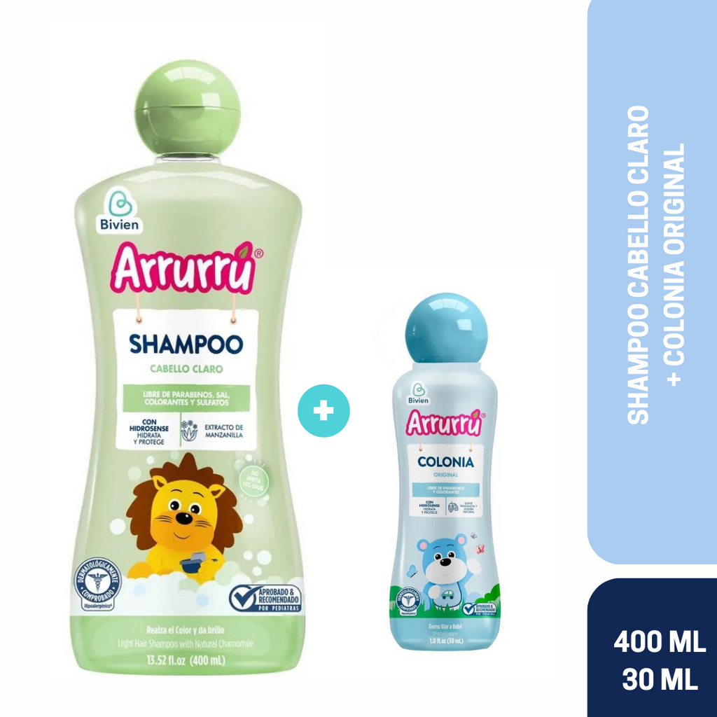 Hermoso combo para tu bebé, incluye Shampoo Cabello Claro + Colonia Original Azul x 30 Lm. Toda la calidad y tradición de arrurú en un solo kit.