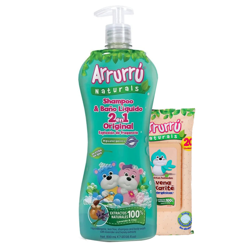 La delicada piel de tu bebé necesita ser protegida con extractos 100% naturales. El shampoo y baño líquido 2 en 1 Original, contiene extractos de lavanda y miel certificados, ingredientes que nutren y suavizan el cabello y la tierna piel de tu bebé. Su fórmula es hipoalergénica y no irrita los ojos.