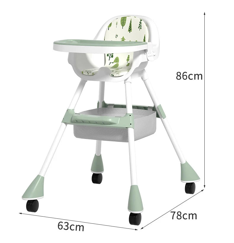 - Plegable:Esta hermosa silla de comer ahorra espacio y es fácil de almacenar y transportar, lo que la hace adecuada para viajes y uso al aire libre.