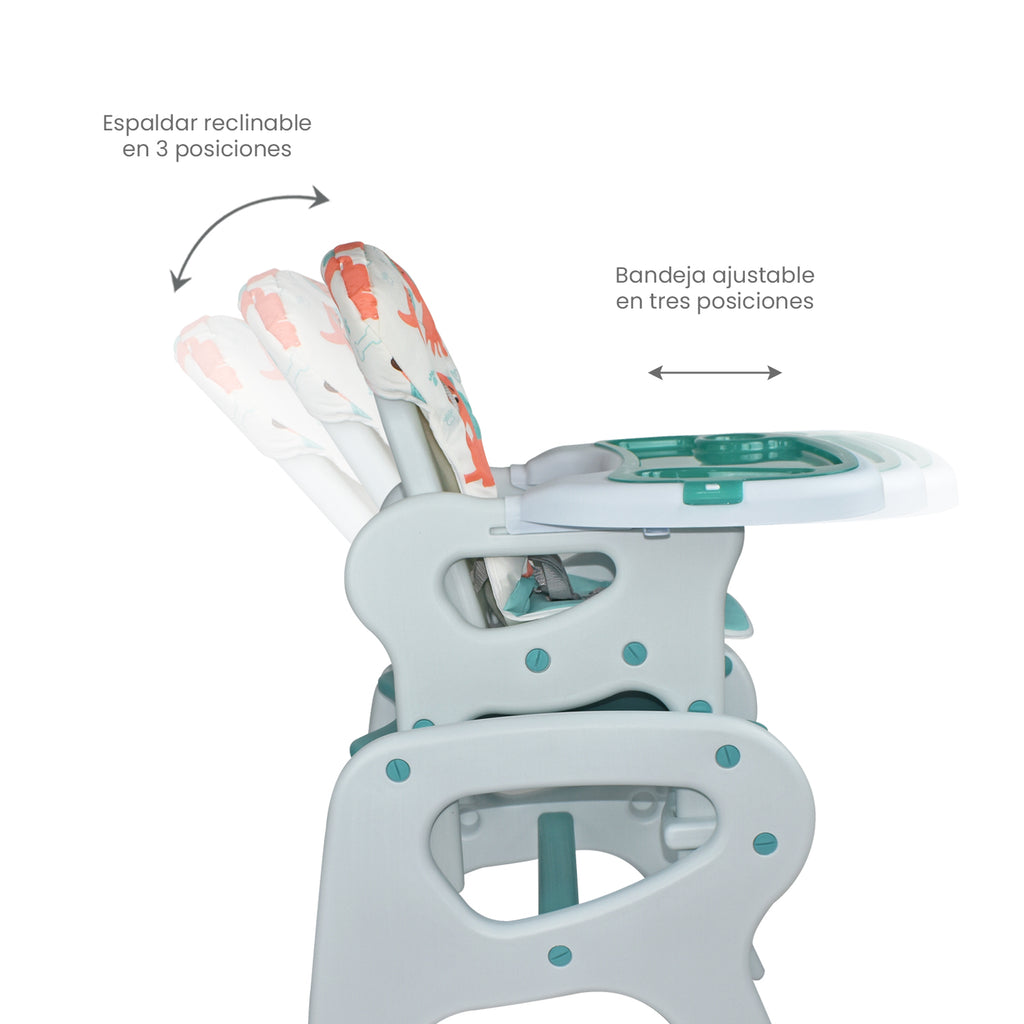 - Conviértelo en escritorio apto hasta los 18 kg, esta función permitirá usarlo en otros ambientes de niño grande como a la hora de hacer tareas, pintar, y comer.