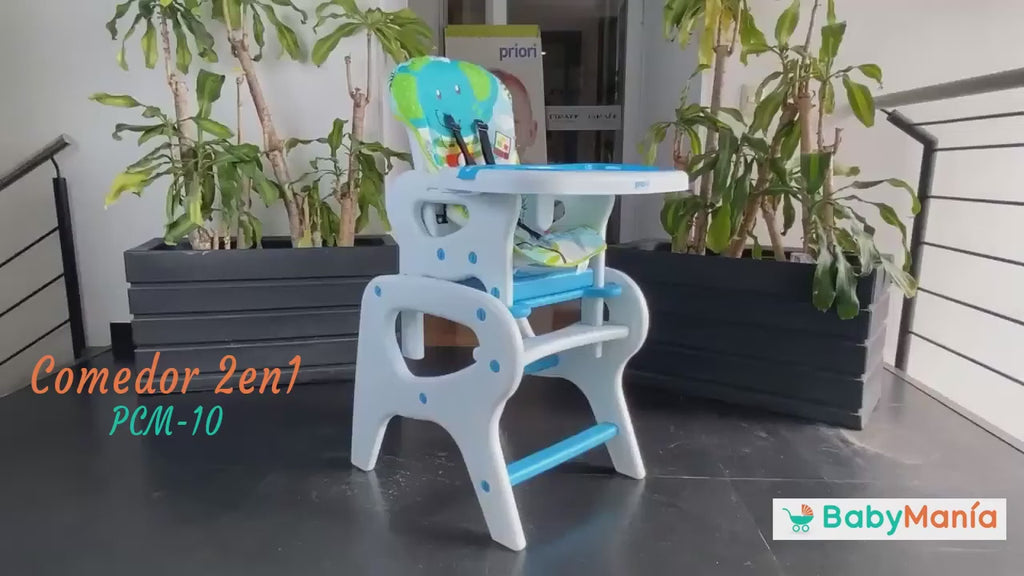 Priori siempre dando lo mejor en las etapas más hermosas de tu bebé, por eso te trae el comedor 2 en 1 función silla comedor alta y mesa de actividades, con posiciones de reclinado en su silla, posiciones ajustables de bandeja, vestido acolchado lavable con estampados alegres, cinturón de seguridad de 5 puntos y doble bandeja.