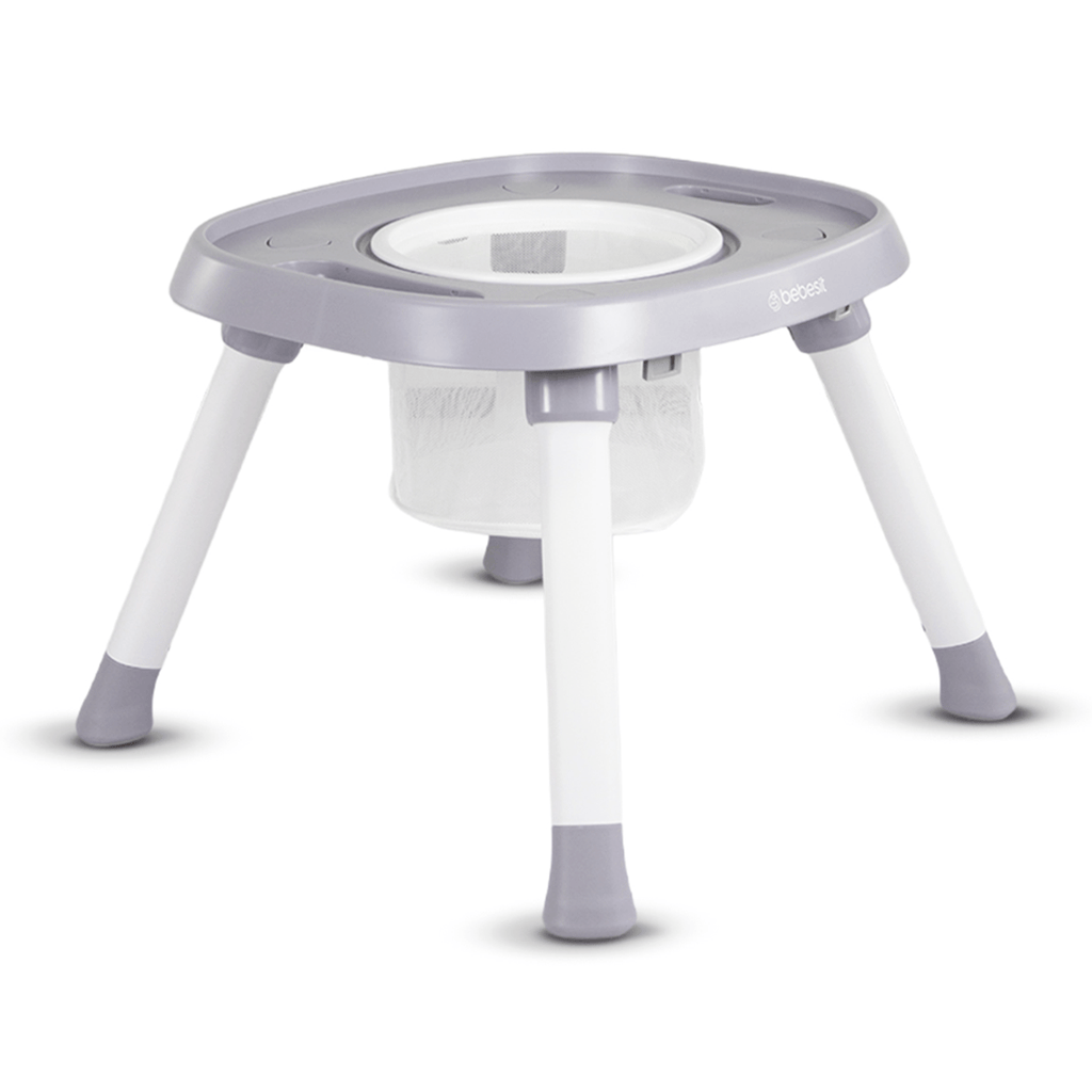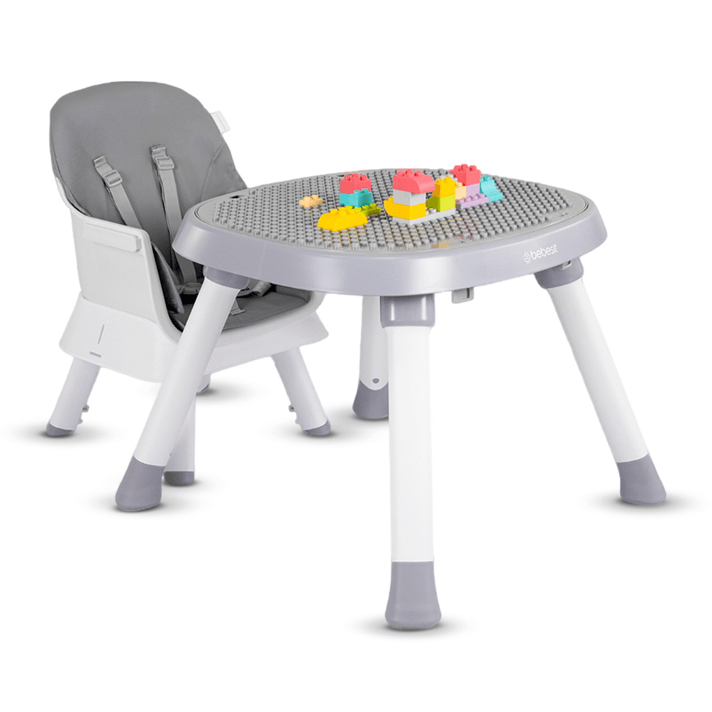 Práctica Silla comedor para Bebé escritorio 12 en 1: utilizable como silla comedor, escritorio, silla compacta tipo banquito para viaje, silla booster, silla elevadora, silla con y sin bandeja, centro de actividades, mesa de juegos, mesa con cesta portaobjetos, banquito alto y butaco. Sus diferentes modos se hacen con pines sin necesidad de herramientas.