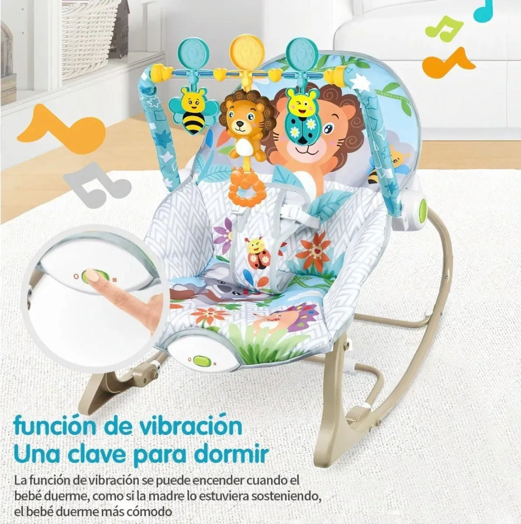 Con la Silla Mecedora de Bebesitos tu bebé disfrutará de un descanso lleno de diversión y relajación. Cuenta con un sistema de vibración y musical para que mantenga siempre a tu bebé entretenido cada día. Recomendado para uso desde recién nacido hasta los 36 meses.