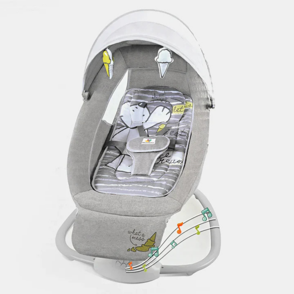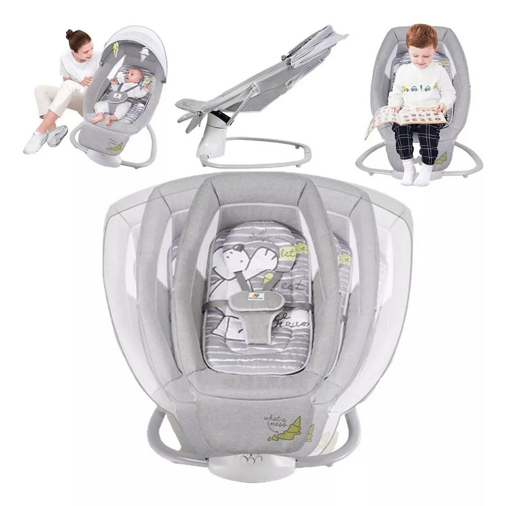 Cuenta con un móvil interactivo que incluye adorables colgantes, ideales para estimular el desarrollo sensorial y mantener al bebé entretenido. Además, la silla incorpora melodías relajantes que crean un ambiente tranquilo. Está fabricada con materiales suaves y seguros, con fundas lavables que facilitan la limpieza.