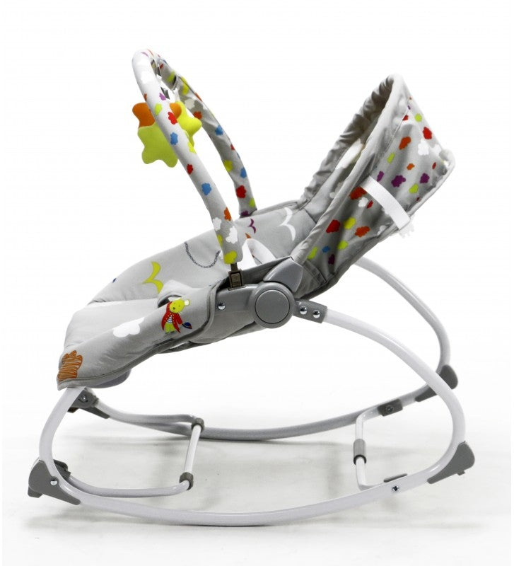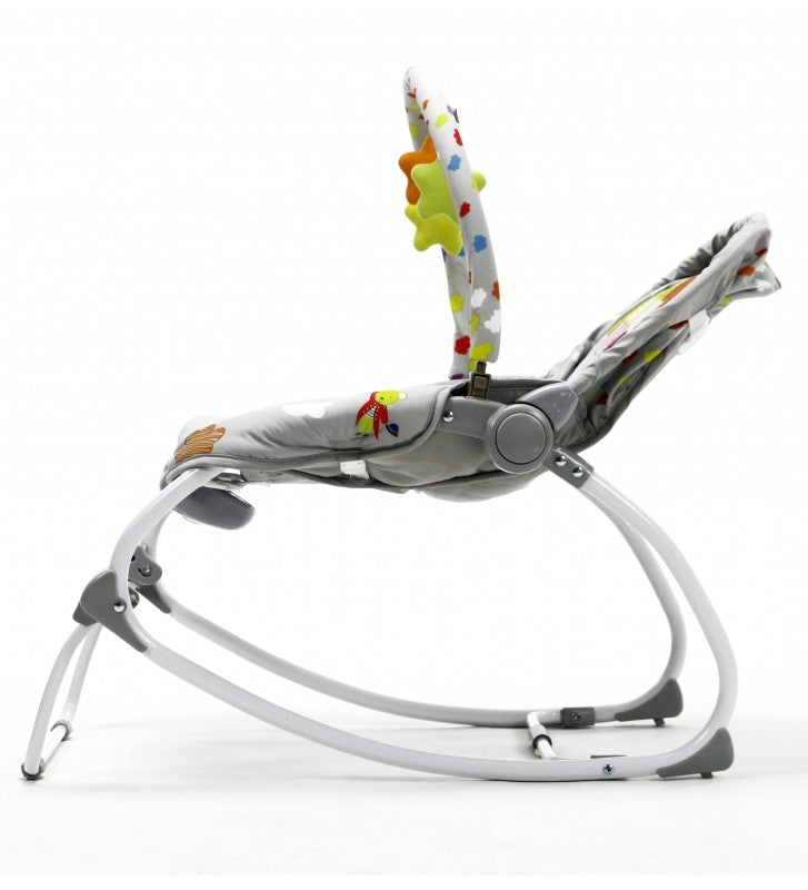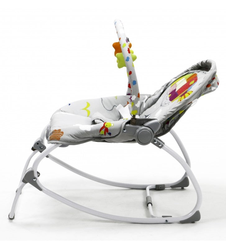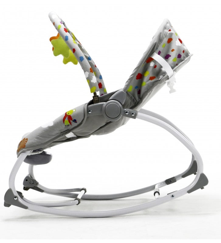 Perfecta incluso para los recién nacidos. Los más pequeños pueden jugar, comer o descansar. Con dos simples movimientos pasarás de tener una hamaca para los más chiquitines a una silla para los más mayorcitos. Sus tres posiciones de respaldo te resultarán sin duda de gran ayuda según el nivel de descanso que necesite el niño en cada momento. El juguetero está pensado para activar la motricidad de los más pequeños y divertirlos. Para relajarse nada mejor que activar algunas de sus diferentes vibraciones o las agradables melodías con volumen regulable, que sin duda calmarán al bebé. Incluye una luz con colores relajantes.