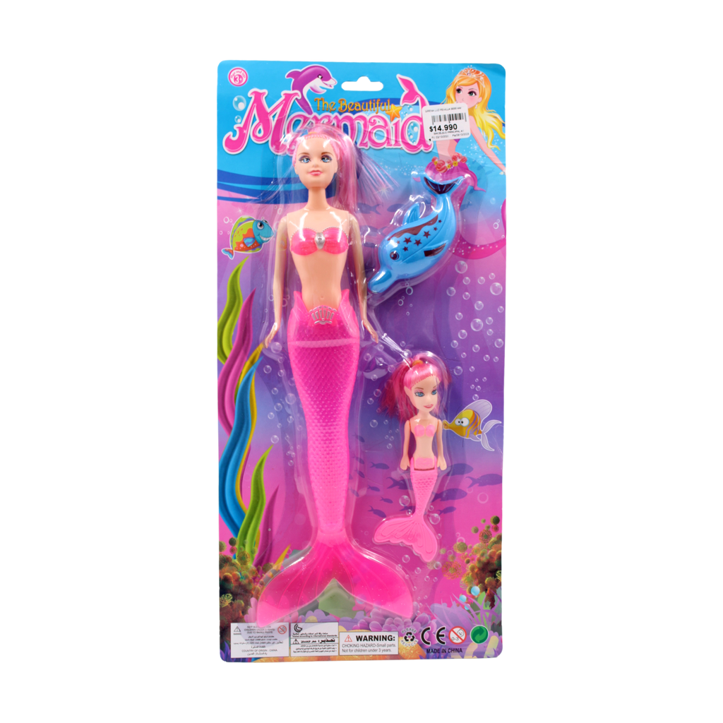 - Preciosa muñeca sirena, tiene un Led en la cola y viene con una muñeca mas pequeña