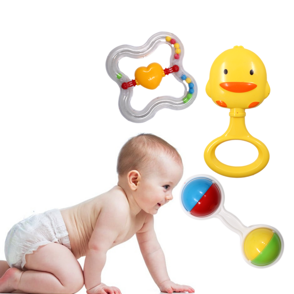 El set sonajero ayuda a que tu bebé sienta la capacidad de hacer que las cosas sucedan a su alrededor, por lo que, al agitarlo, cambiarlo de posición y observar los sonidos y los colores, está activando su vista, su tacto y su audición. Además, si utilizas este objeto durante una actividad determinada, también estarás contribuyendo a estimular su memorización.