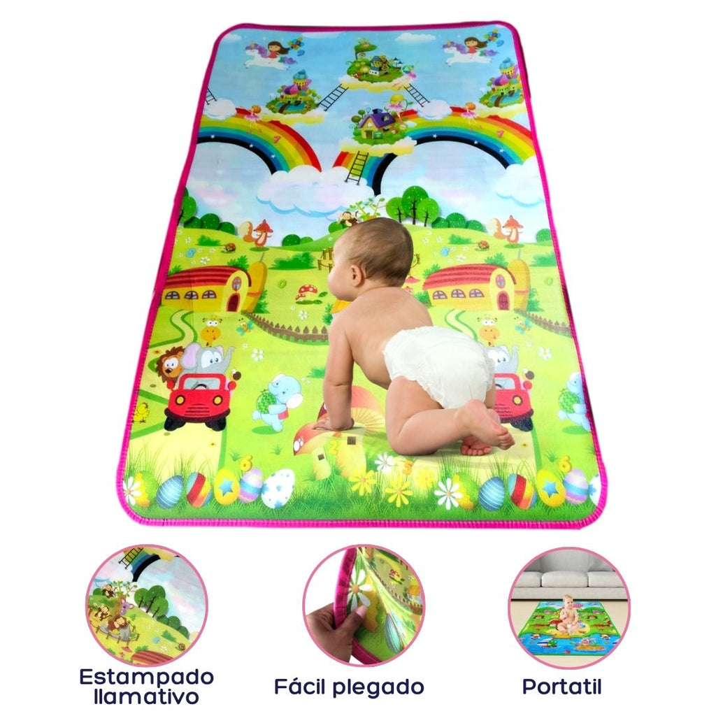 Este hermoso tapete Alfombra infantil que te ofrecemos es ideal para que tu Bebe pueda jugar y aprender de forma libre, gracias a su suavidad y tamaño es ideal permite tenerlo dentro de la habitación o cualquier otro lugar, a la vez, le permite al Bebe explorar sus inicios de gateo de forma segura sin que se le maltraten sus piernitas.