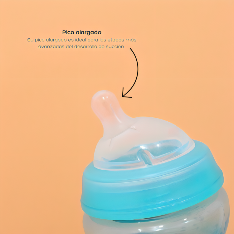 - La tetina en angulo con base redondeada es ideal para una posición y cierres ideales