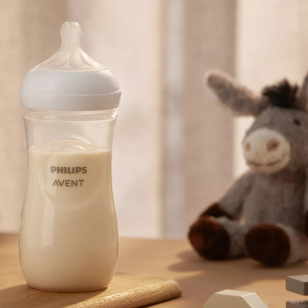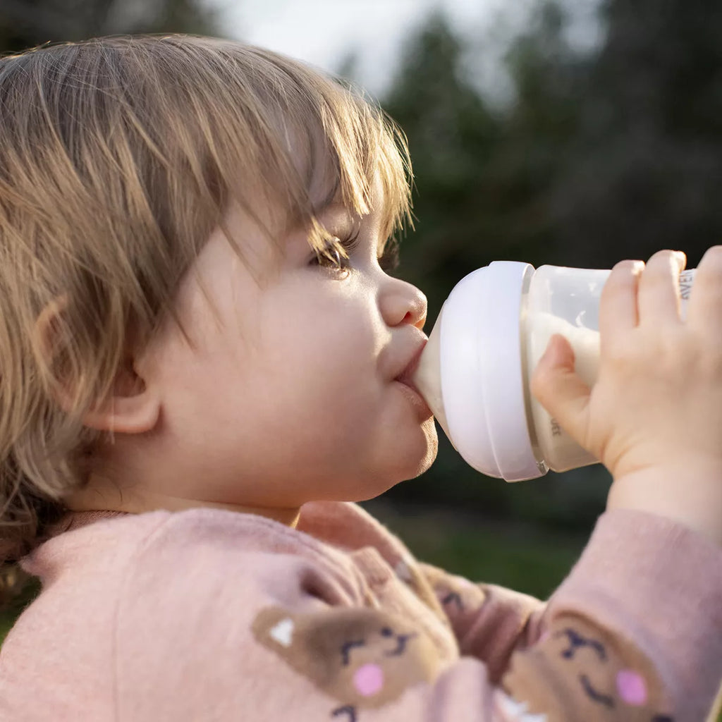 La tetina de respuesta natural solo libera leche cuando los bebés tragan de forma activa. Pueden beber, tragar y respirar con su ritmo natural como en el pecho, lo que facilita que combinen la alimentación con el pecho y el biberón.