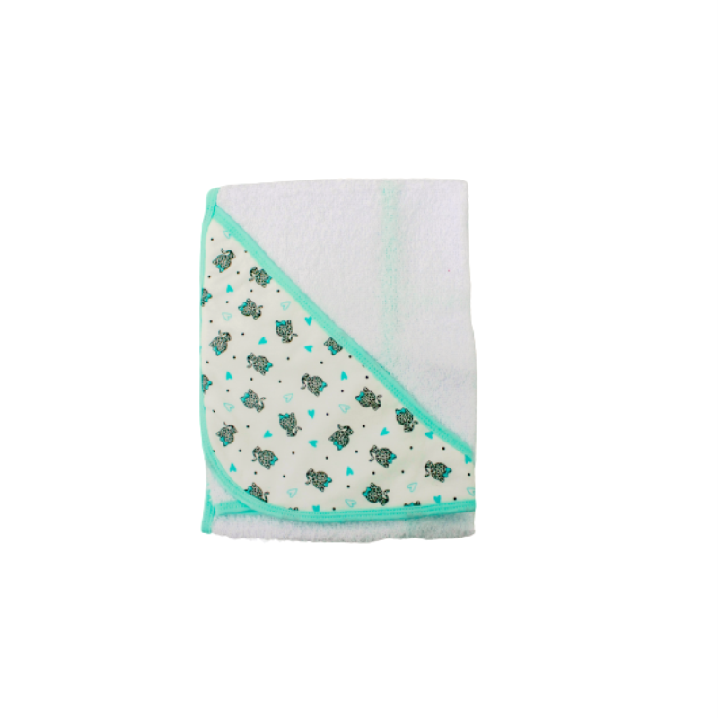 Toalla con aplique y sesgo en colores variados. Capota para que no se caiga la toalla después del baño de tu bebé.