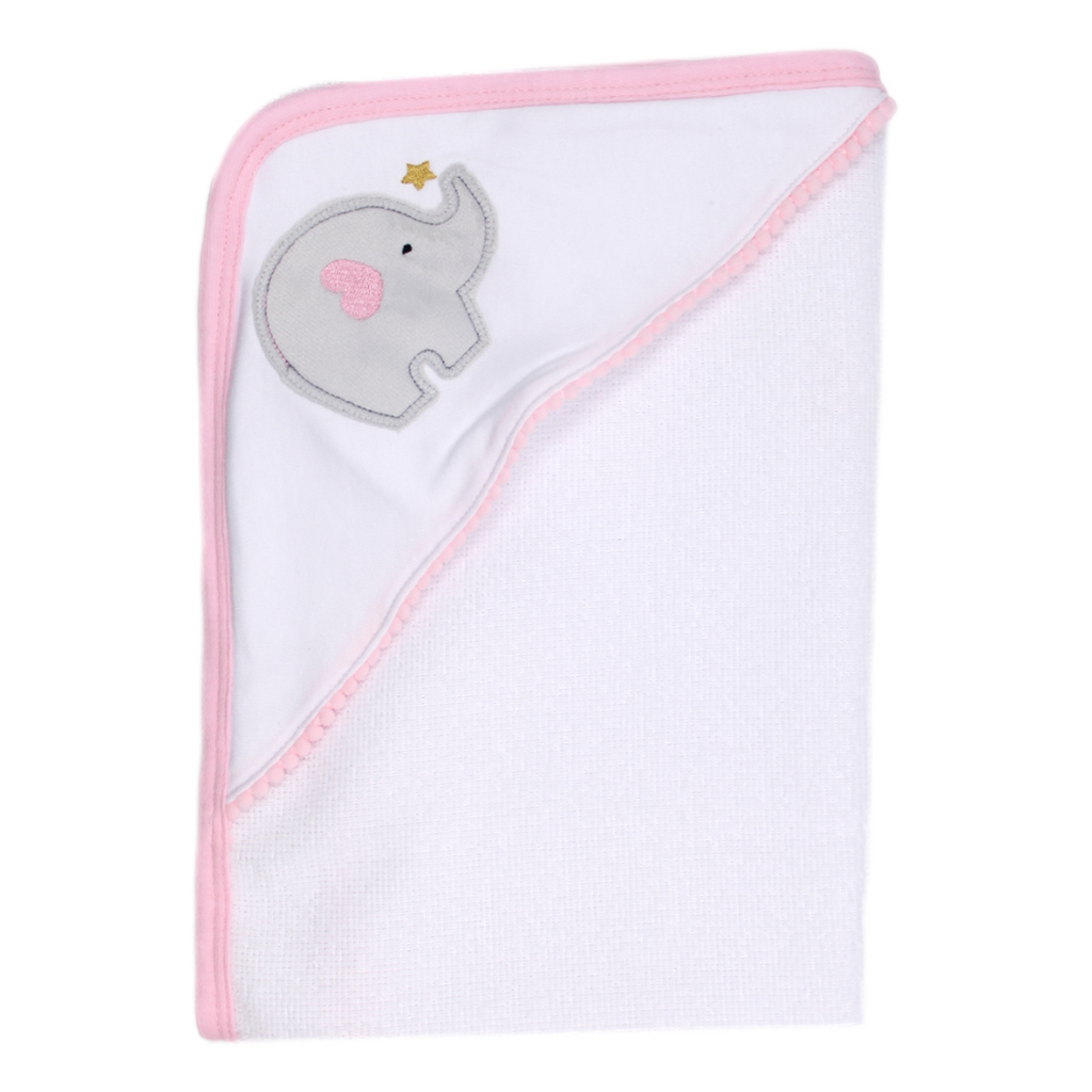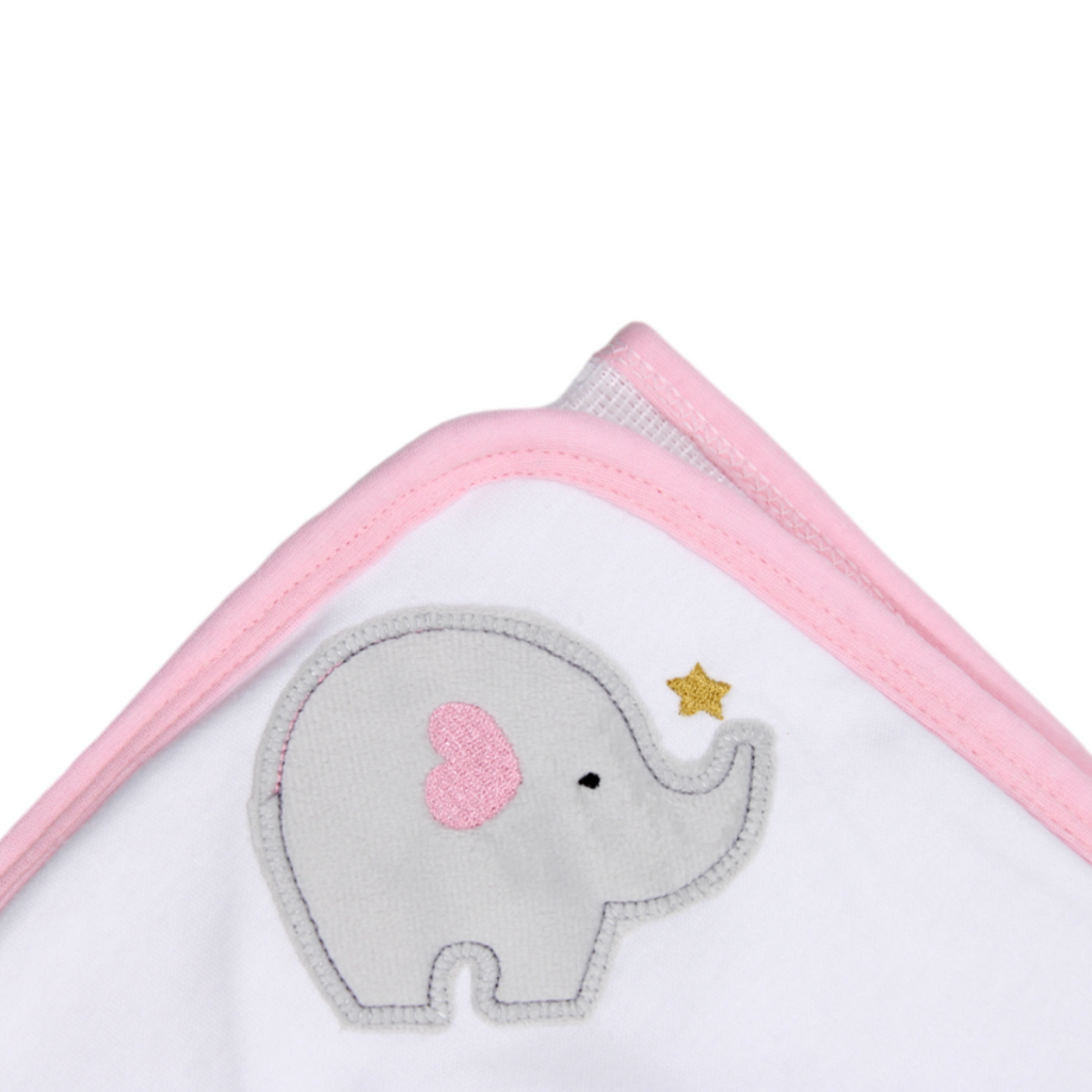 Toalla Eco con capota y sesgo de colores bordada. ideal para esos primeros días de tu bebé.