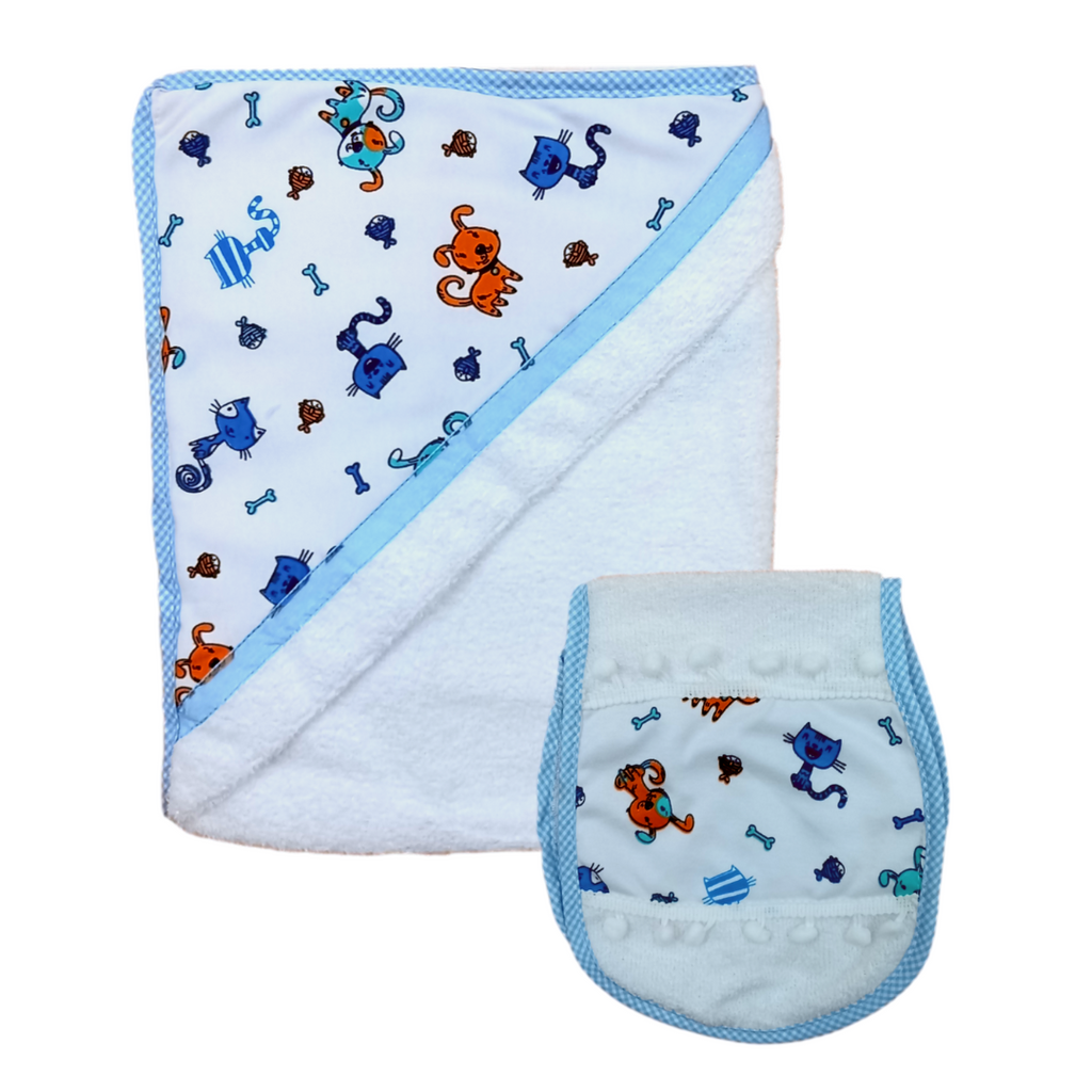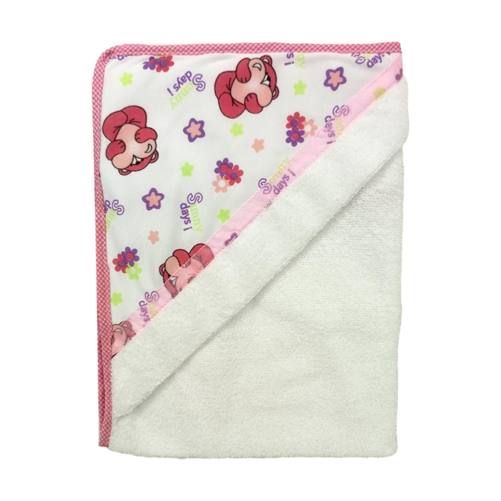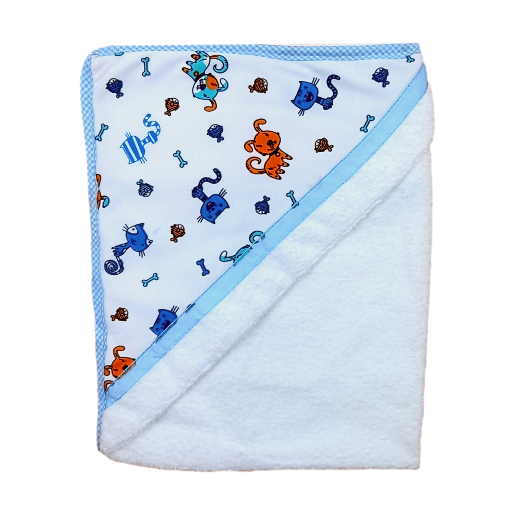 Toalla doble faz con capota y sesgo de colores bordada. ideal para esos primeros días de tu bebé.