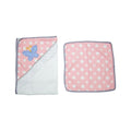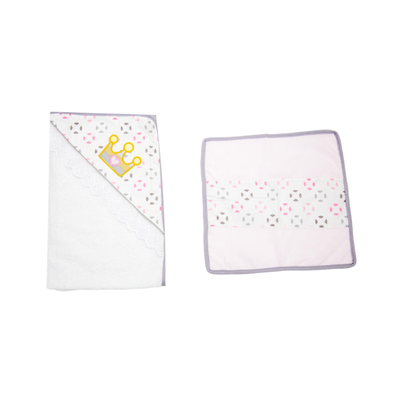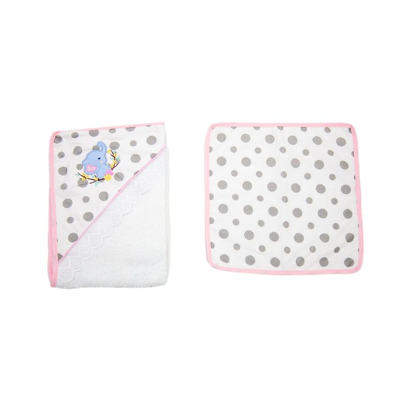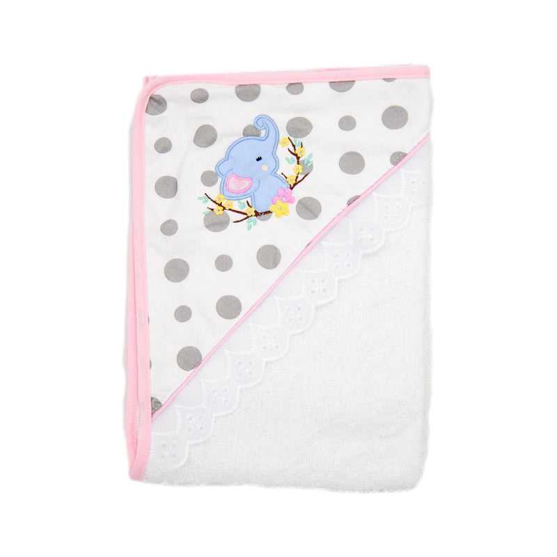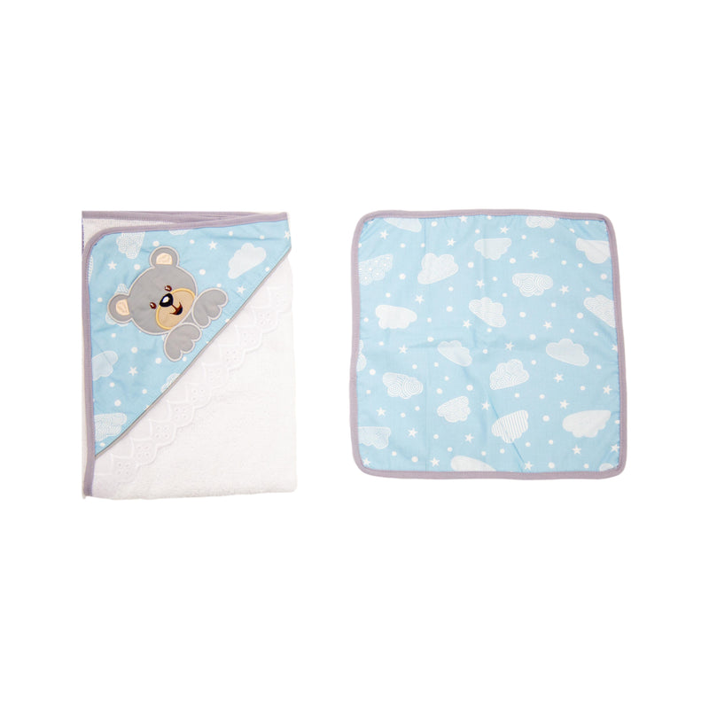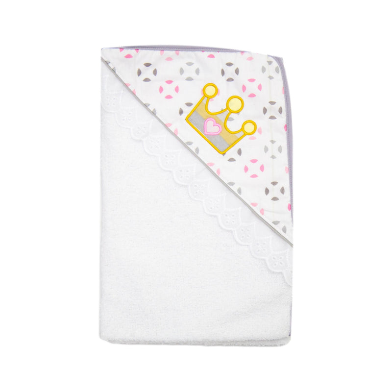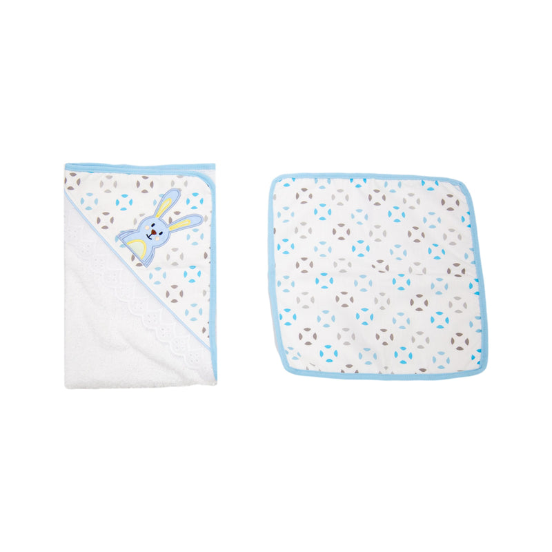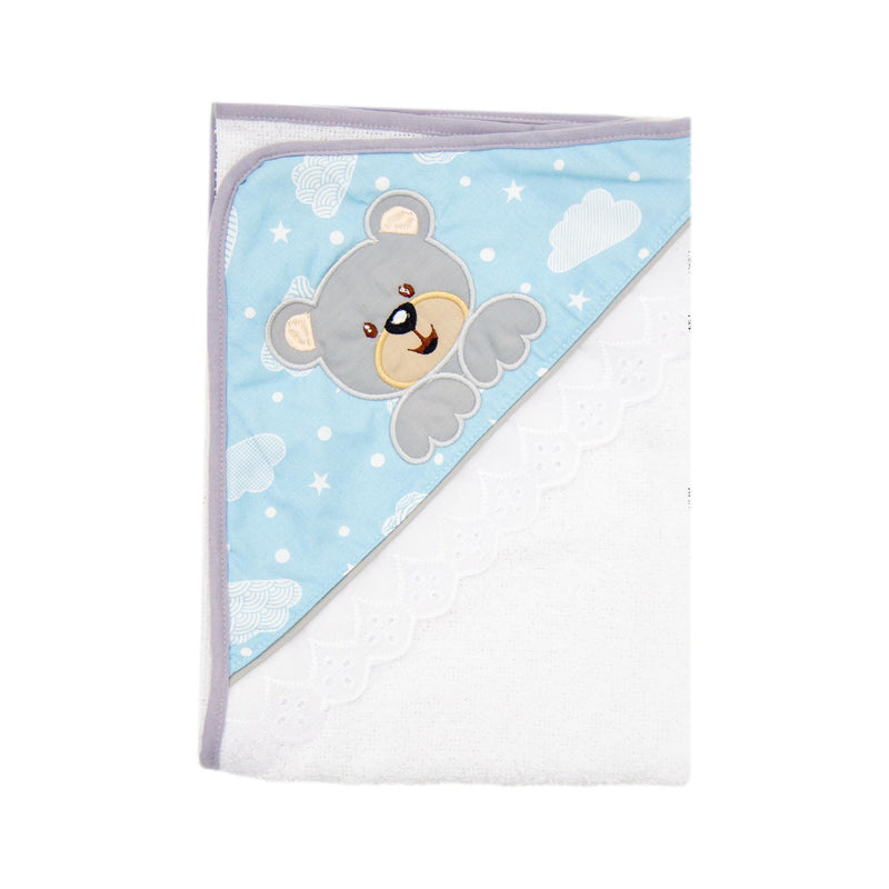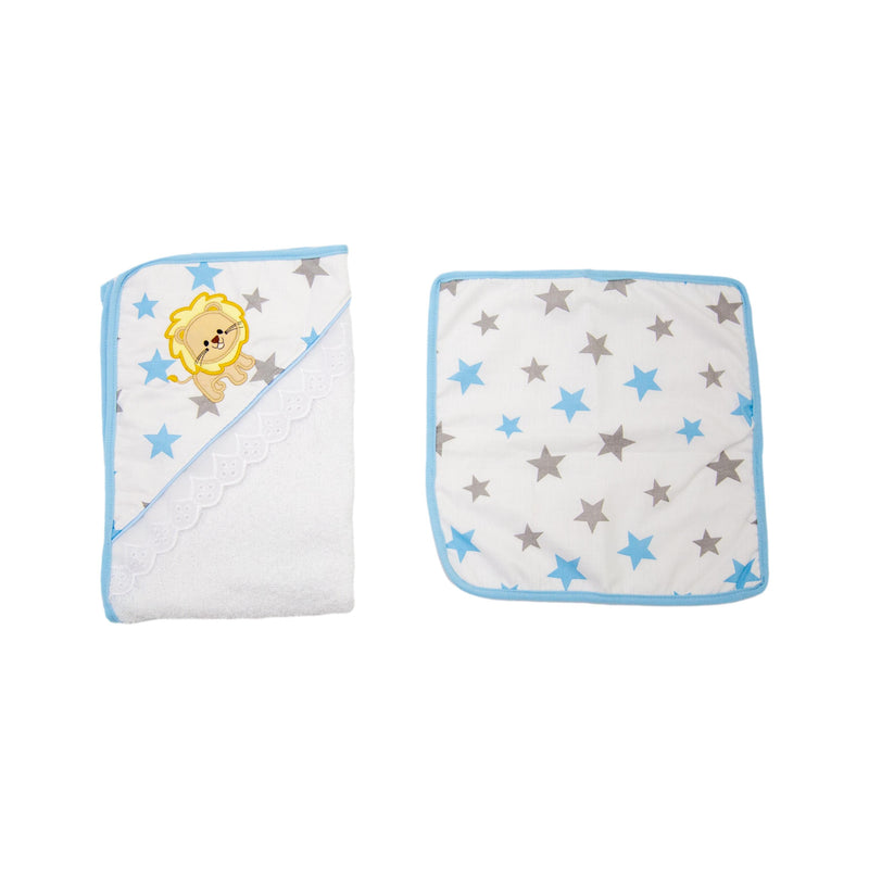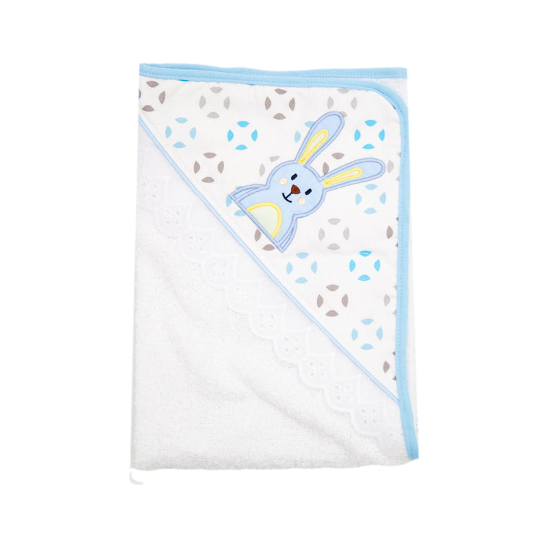 Toalla con capota y sesgo de colores bordada. ideal para esos primeros días de tu bebé. Contiene toalla pequeña estampada.