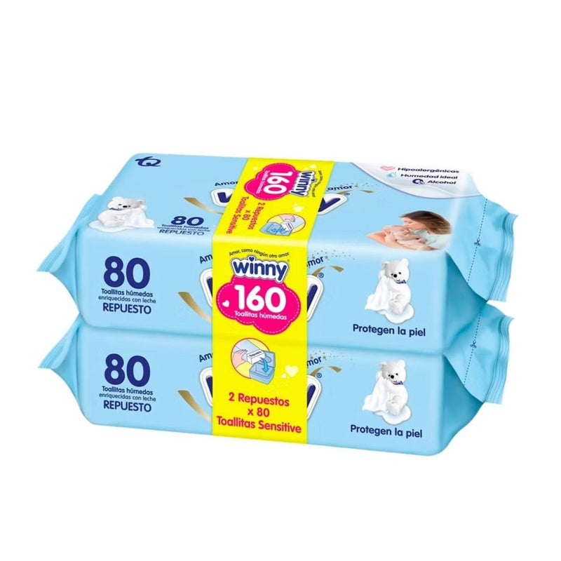 - Toallitas Húmedas Winny Sensitive enriquecidas con leche.