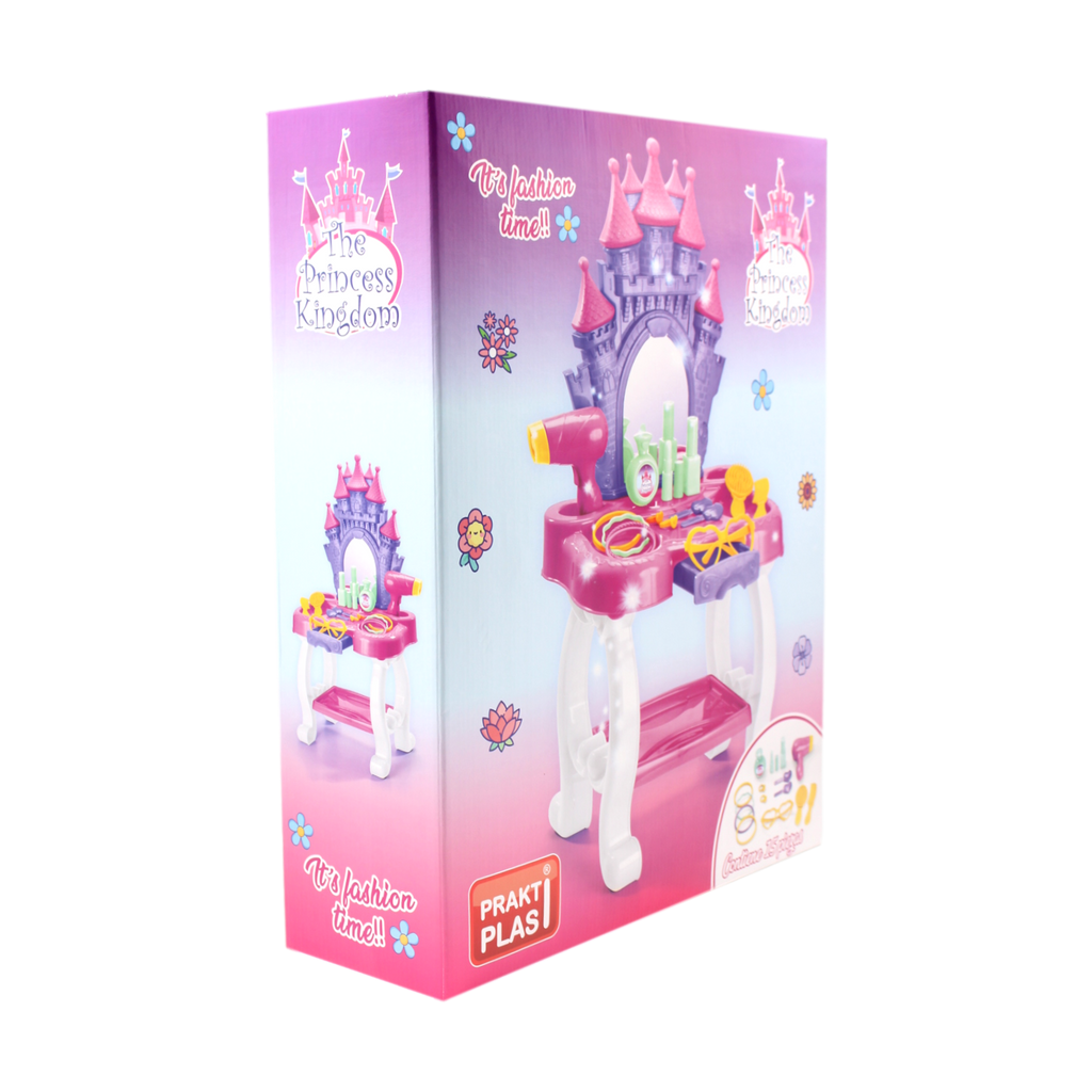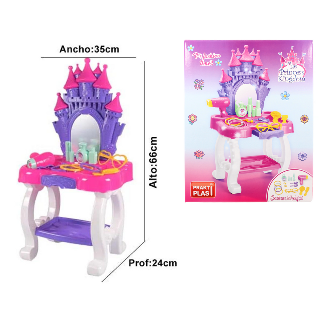 El TOCADOR CASTILLO PRJ-014 PRAKTIPLAS será el mejor regalo para tus hijas. Con su hermoso diseño en forma de castillo, será un lugar para que jueguen, se diviertan y desarrollen su creatividad. ¡Ideales para enriquecer el imaginario de tus pequeños!