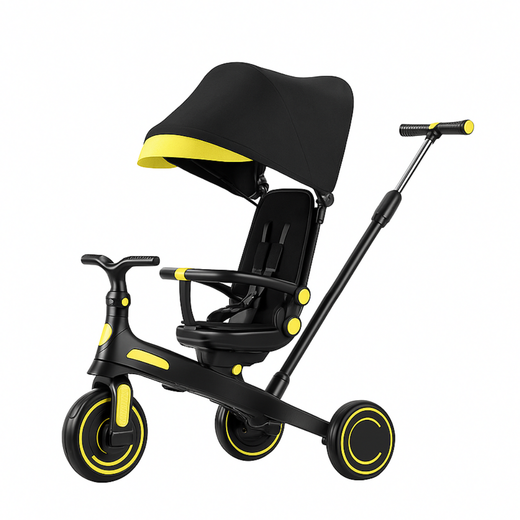El triciclo multifuncional 5 en 1 es la solución ideal para acompañar el crecimiento de tu hijo desde su primer año hasta los 6 años. Su diseño adaptable permite transformarlo en coche con manija, triciclo clásico, bicicleta de equilibrio y más. Gracias a su estructura robusta, asiento cómodo y capota protectora, ofrece seguridad y diversión tanto en interiores como exteriores. Un aliado perfecto para estimular la independencia, el equilibrio y la coordinación de los más pequeños.