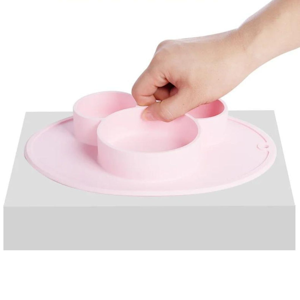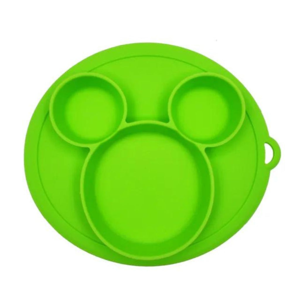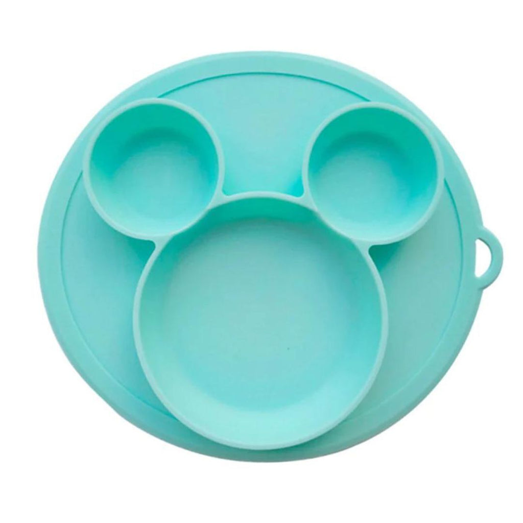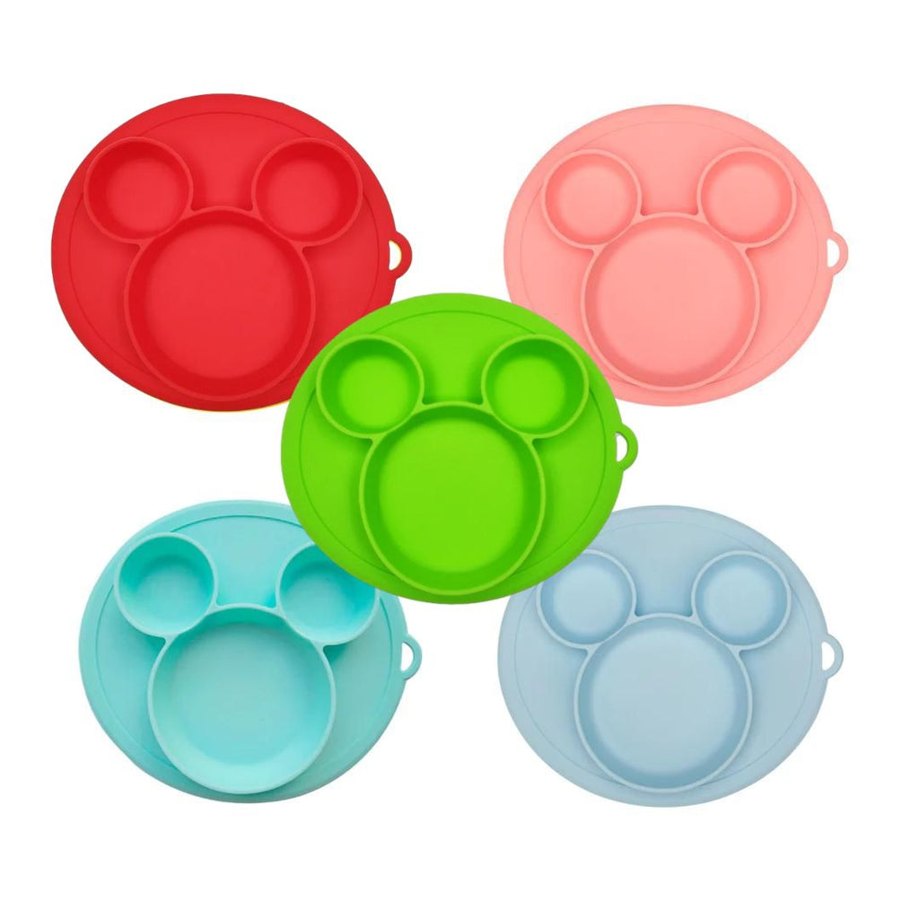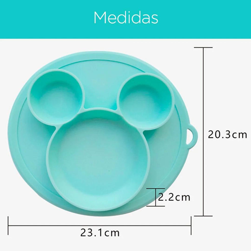 Plato en silicona con la forma de Mickey Mouse, colores variados y un diseño que llamará la atención de tu bebé, y hará la hora de comer un momento aún más divertido.