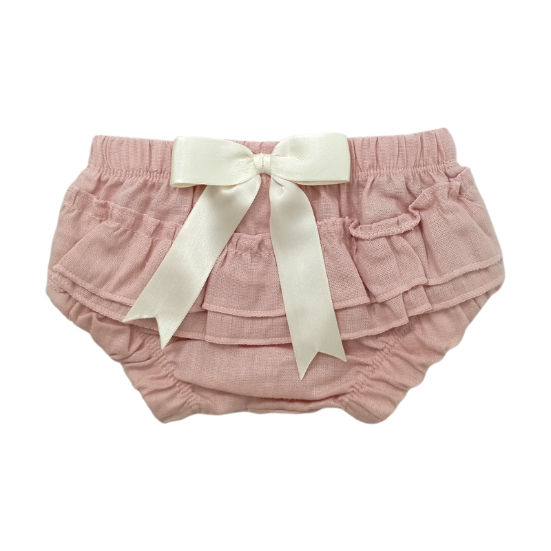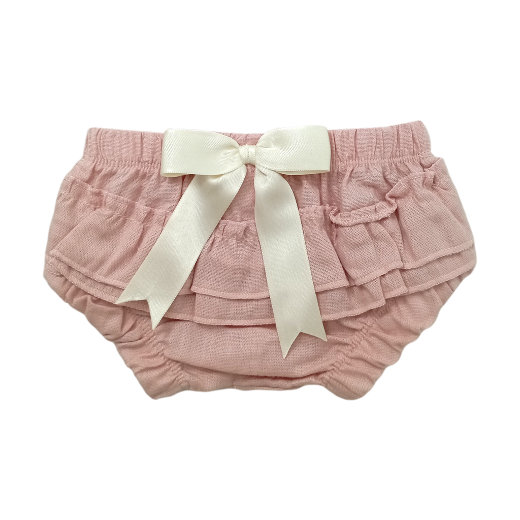 Vestido estampado con detalles decorativos, panty con arandelas y lazo en la parte posterior. Contiene hermosa balaca.