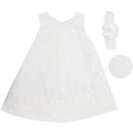 Vestido bautizo blanco, sin manga con estampados de flores en la parte inferior. Contiene cintillo blanco.
