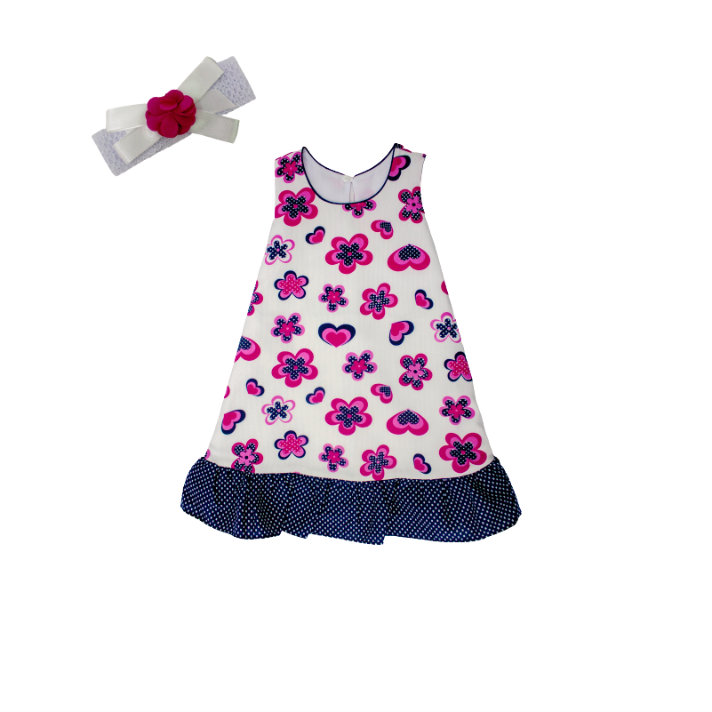 Vestido para niña con estampados de flores, que harán lucir a tu pequeña mucho más bella. Contiene hermoso gancho para cabello.