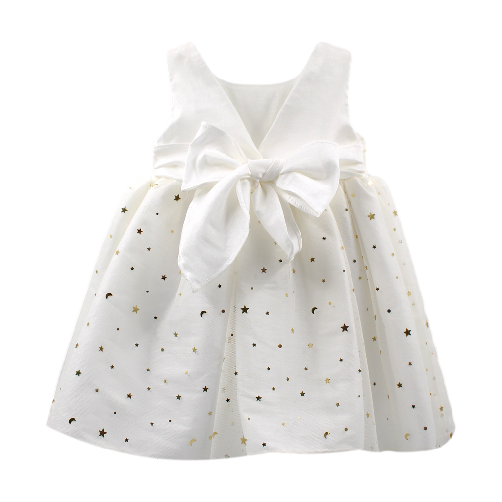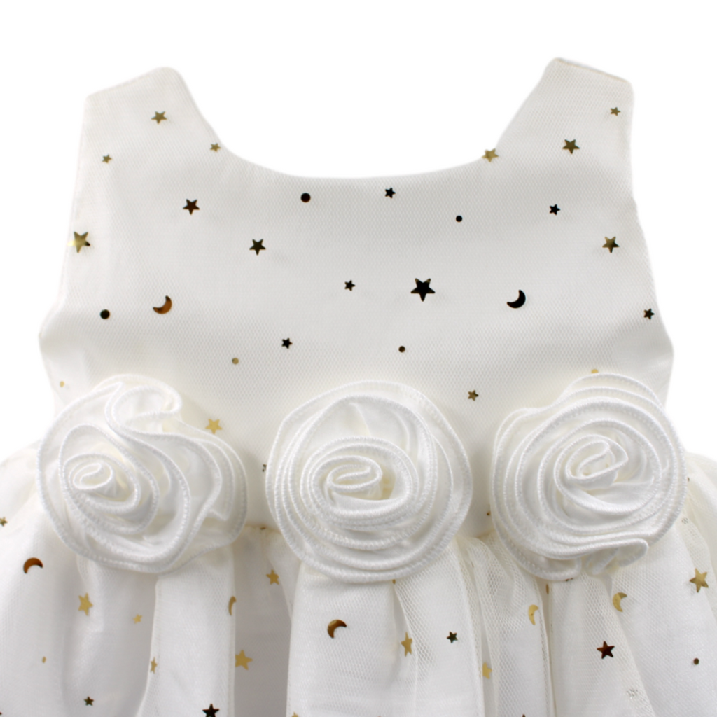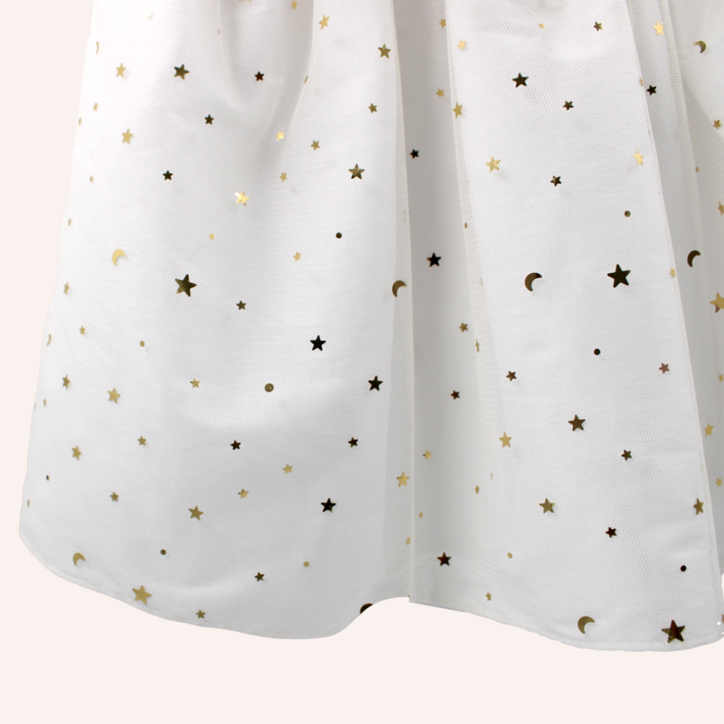 Vestido de tull con hermosas estrellas, detalles decorativos y elementos de adorno, manga corta.