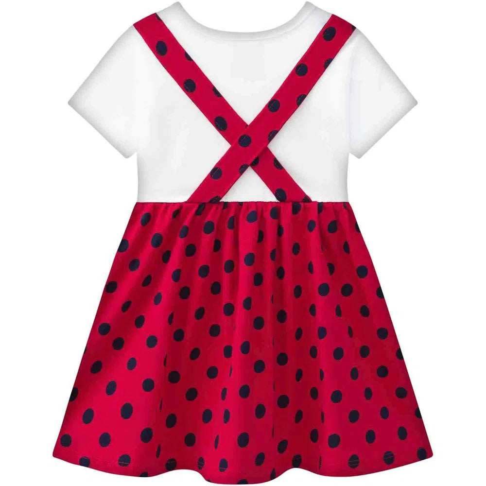Vestido Infantil Kyly confeccionado en Algodón , presenta falda con volante dejando la pieza suelta, estampado neón con aplicación de lazo de grosgrain rotatorio a la altura del pecho y tirantes en forma de X en la espalda.