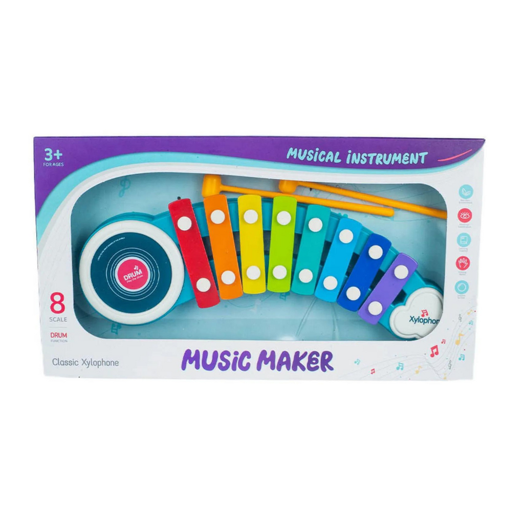 - El juguete xilófono tiene 8 tonos que son conocidos por sus colores vibrantes, haciendo que la música compleja se convierta en bloques simples de color que corresponden a la tonificación