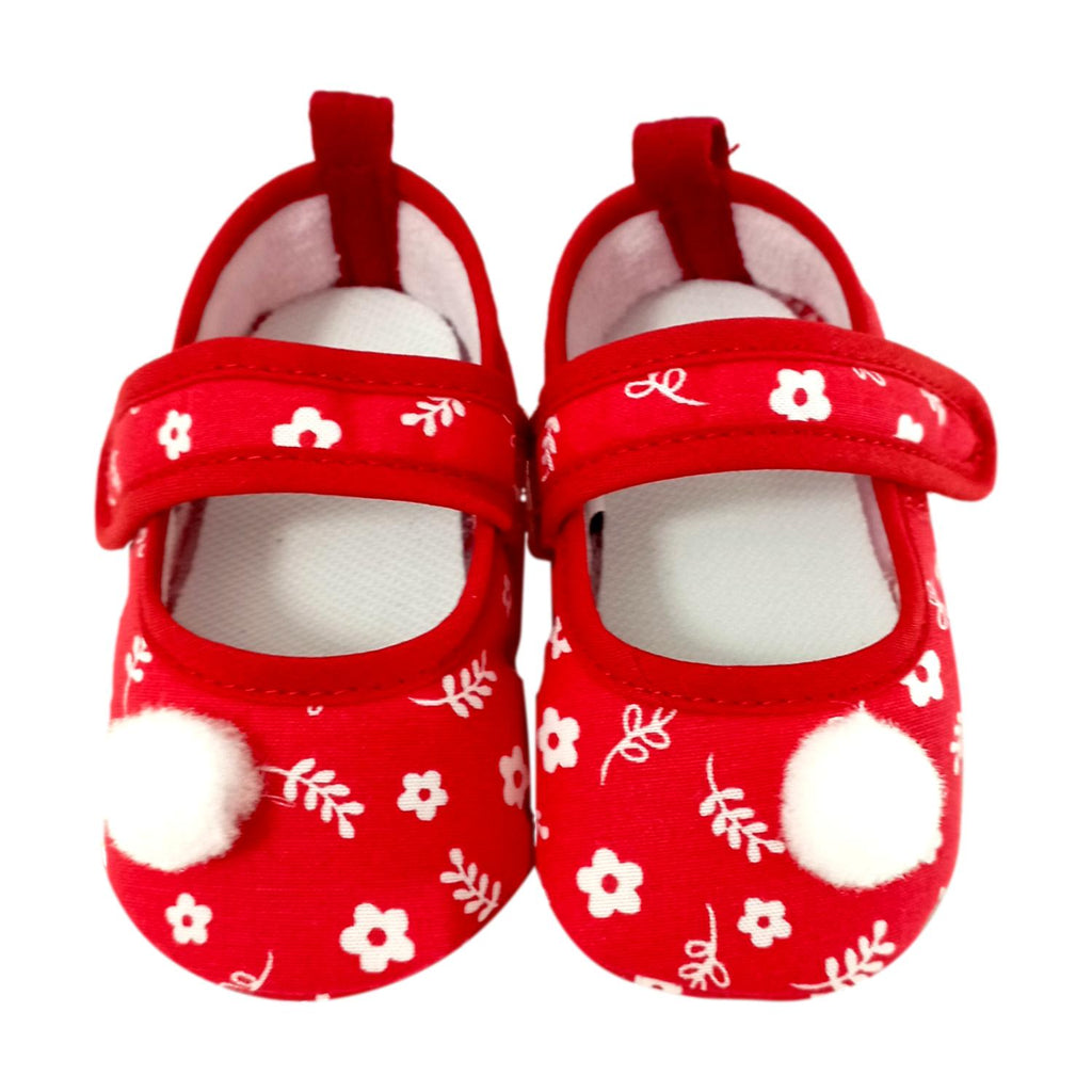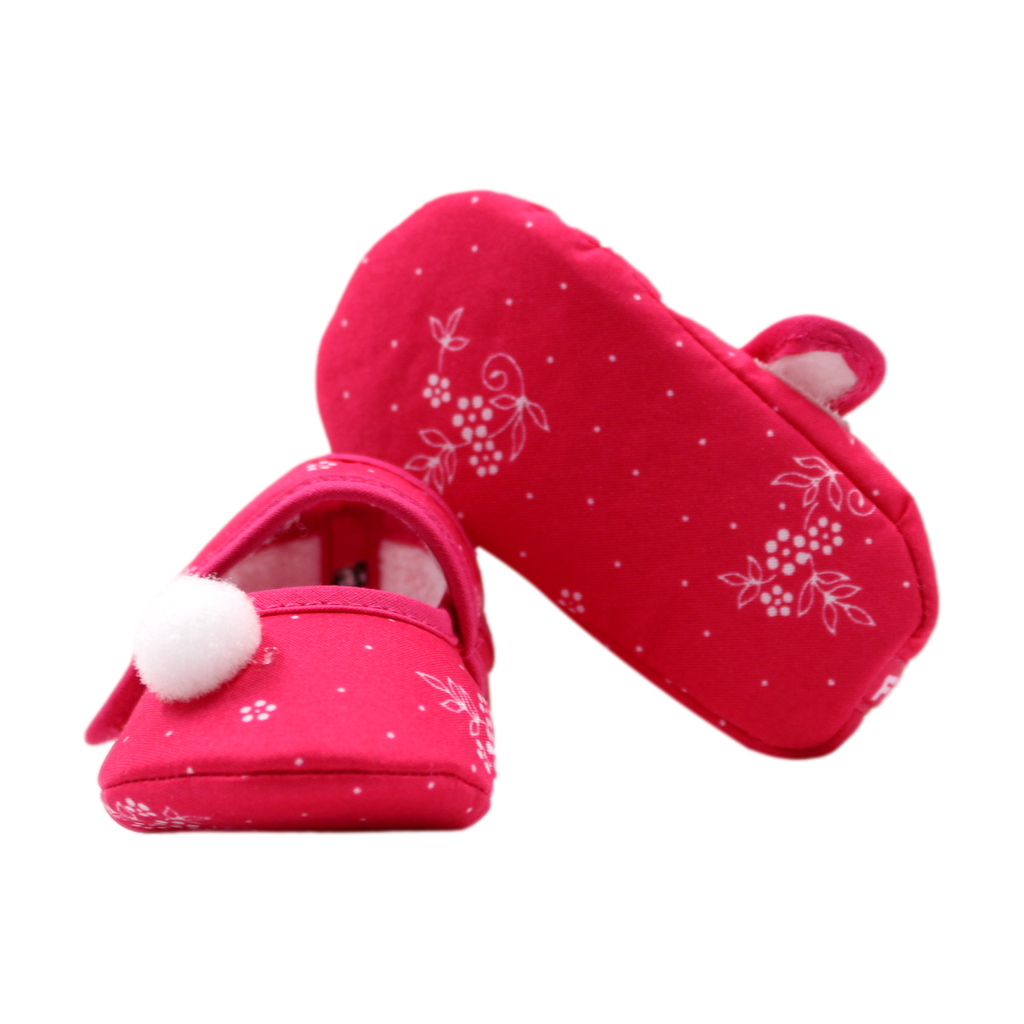 Zapato para bebé con detalle de flores. Ajustable, suave y delicado, ideal para proteger los primeros pasos de tu pequeño. Variedad de colores.